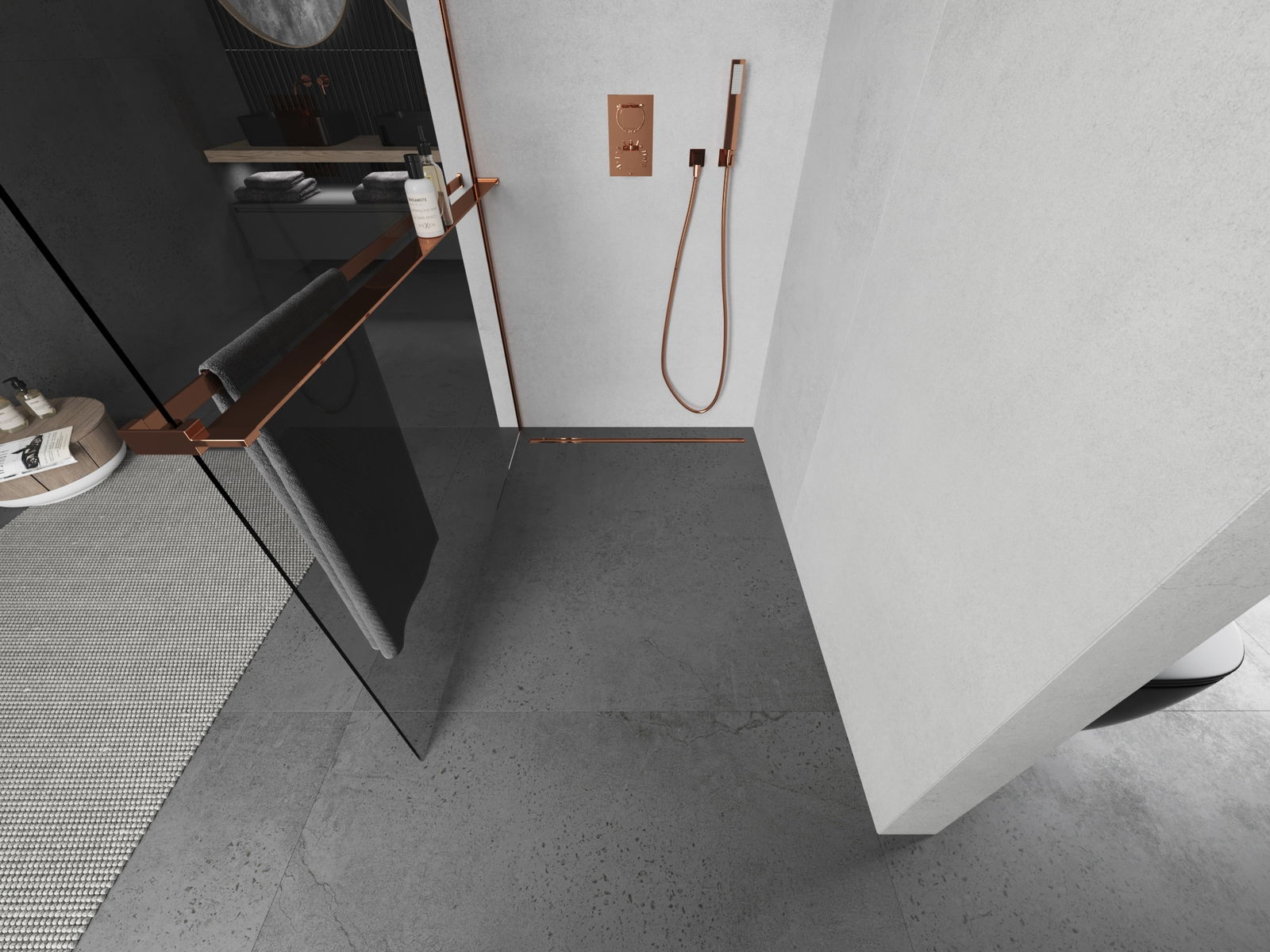Mexen Kioto+ dušo sienelė su lentyna Walk-in 95 x 200 cm, skaidri, rožinio aukso - 800-095-121-60-00