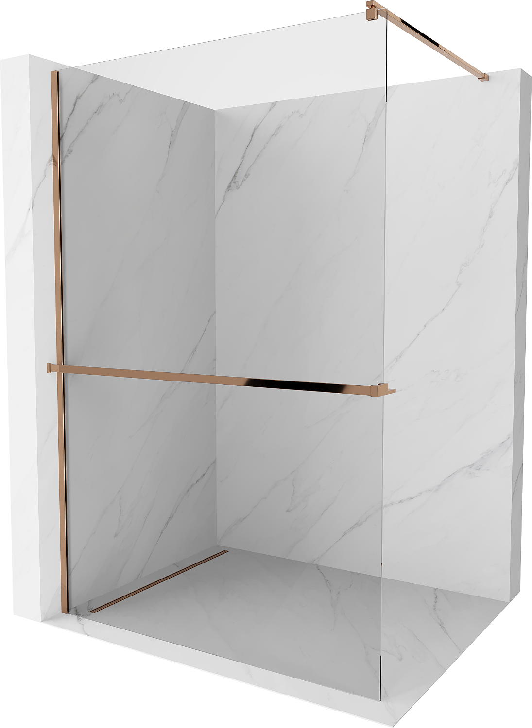 Mexen Kioto+ dušo sienelė su lentyna Walk-in 125 x 200 cm, skaidri, rožinis auksas - 800-125-121-60-00