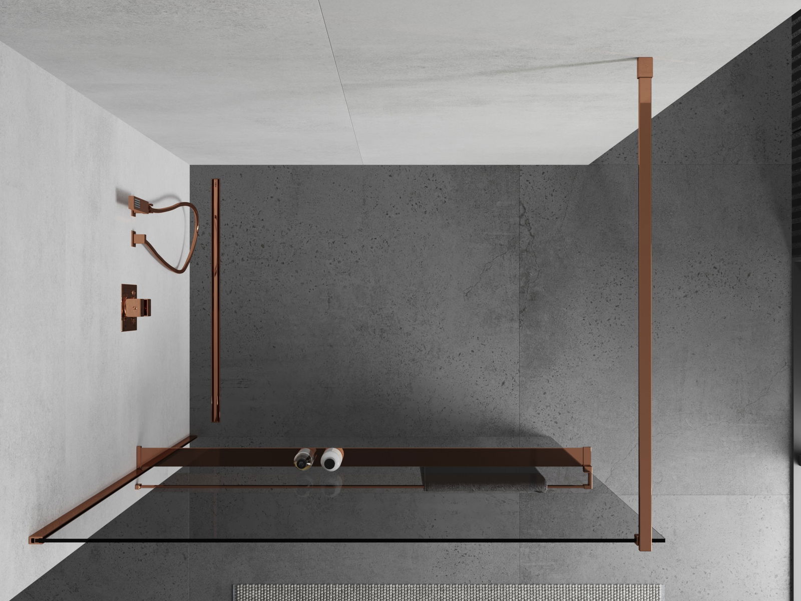 Mexen Kioto+ dušo sienelė su lentyna Walk-in 135 x 200 cm, skaidri, rožinis auksas - 800-135-121-60-00