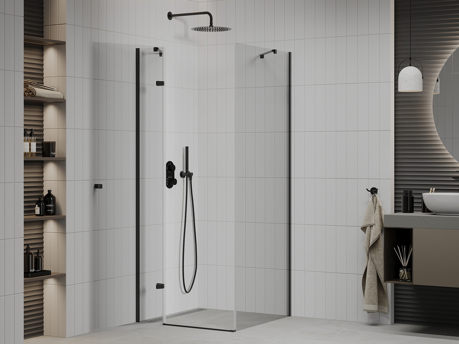 Mexen Roma 90 x 90 cm atveriama dušo kabina, permatoma, juoda - 854-090-090-70-00