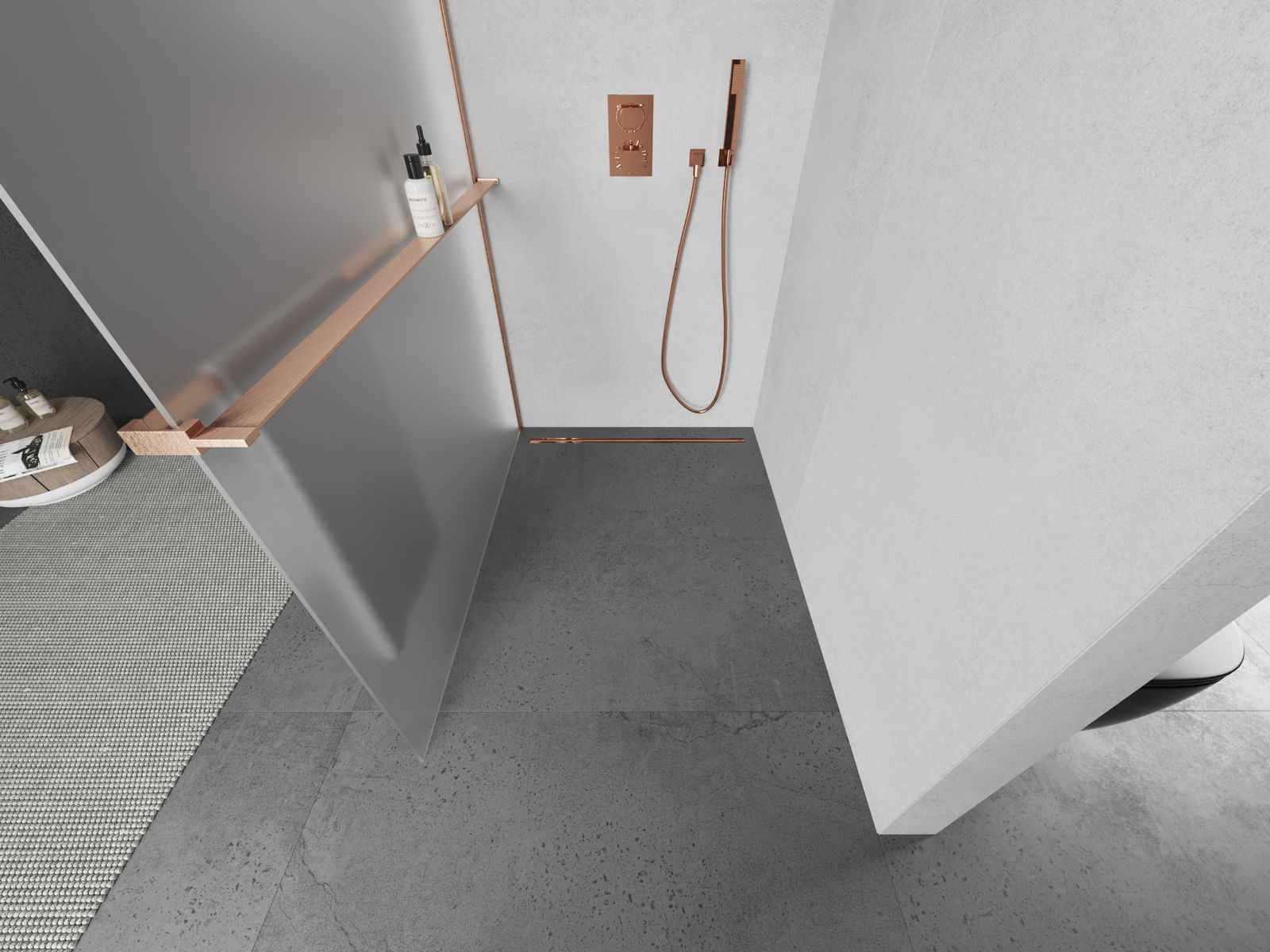 Mexen Kioto+ dušo siena su lentyna Walk-in 100 x 200 cm, matinis, šlifuotas varis - 800-100-121-65-30