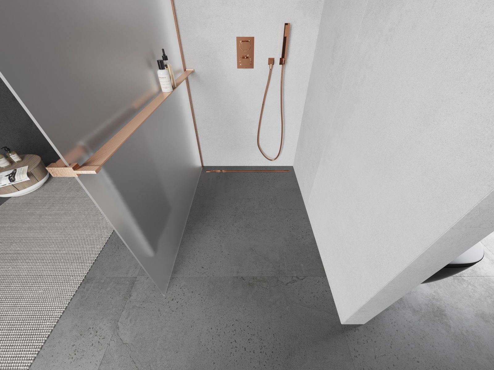 Mexen Kioto+ dušo sienelė su lentyna Walk-in 120 x 200 cm, matinė, šlifuota varis - 800-120-121-65-30