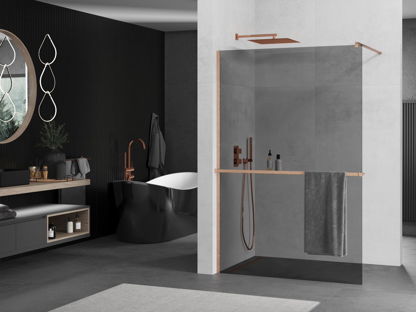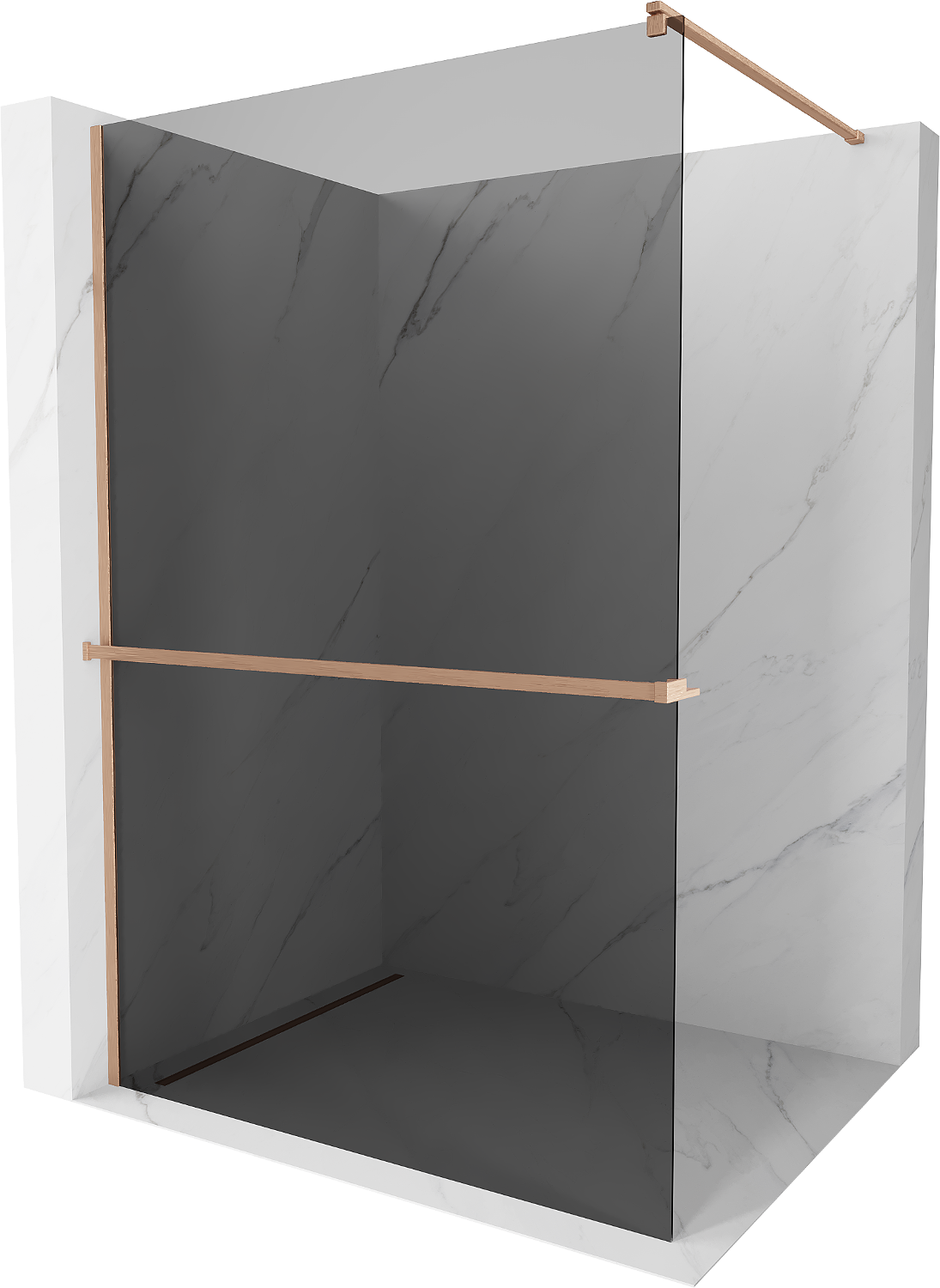 Mexen Kioto+ dušo siena su lentyna Walk-in 90 x 200 cm, grafitas, šepečiu poliruotas varis - 800-090-121-65-40