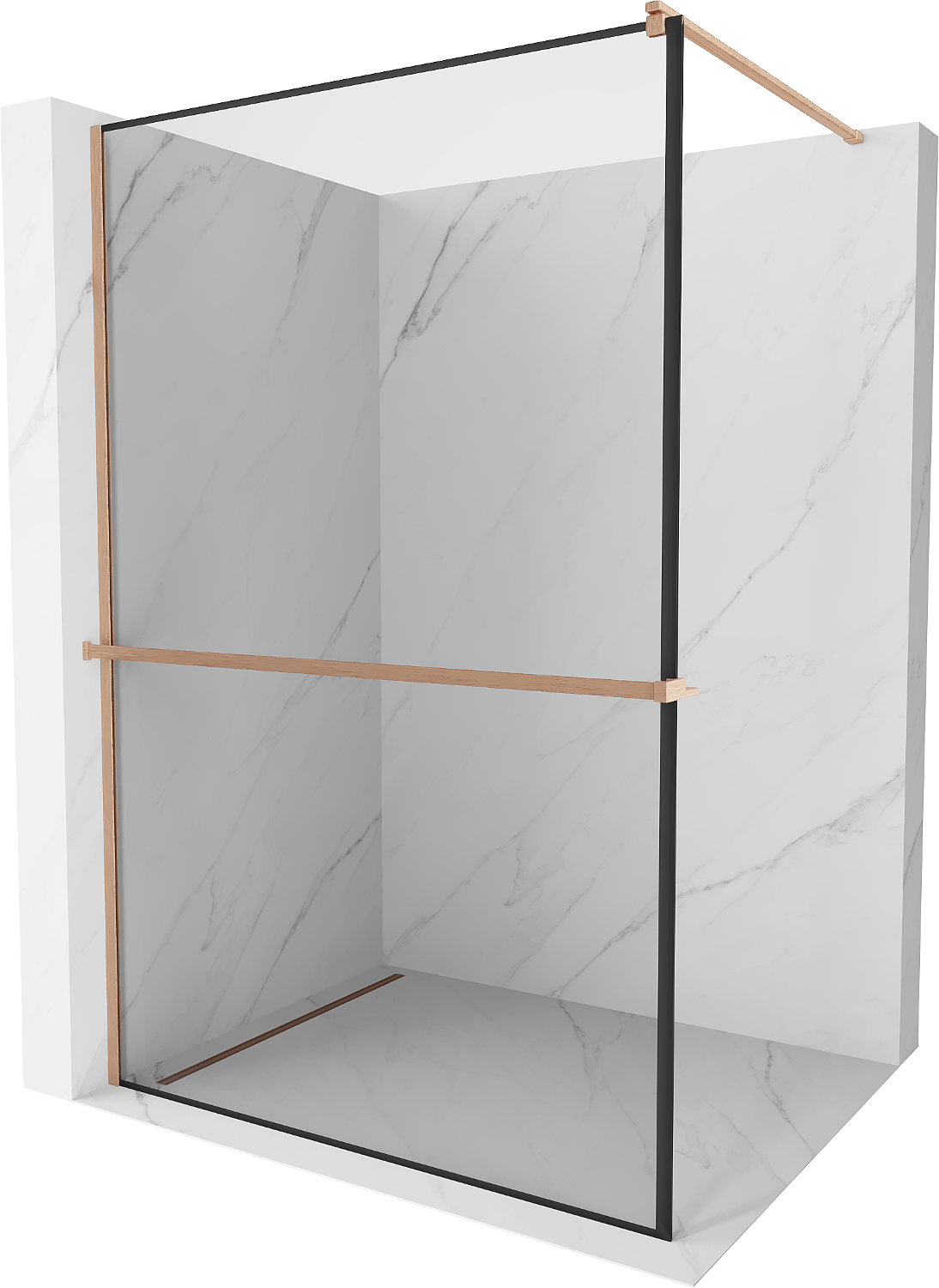 Mexen Kioto+ dušo sienelė su lentyna Walk-in 120 x 200 cm, juodas rėmas, šlifuota varis - 800-120-121-65-70