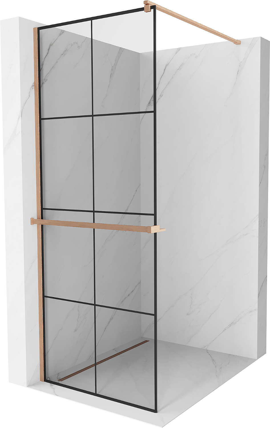 Mexen Kioto+ dušas siena su lentyna Walk-in 80 x 200 cm, juodas tinklelis, šlifuotas varis - 800-080-121-65-77