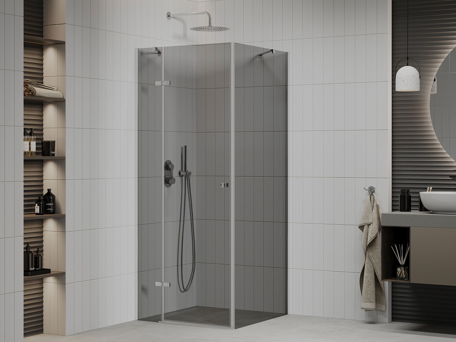Mexen Roma atveriama dušo kabina 70 x 70 cm, grafitas, chromas - 854-070-070-01-40