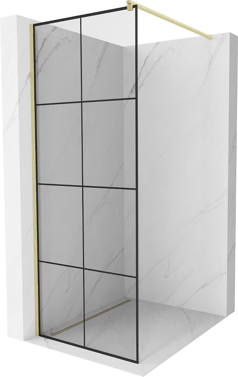 Mexen Kioto Dušo sienelė Walk-in 80 x 200 cm, juodas tinklelis 8 mm, auksinis šlifuotas - 800-080-101-55-77