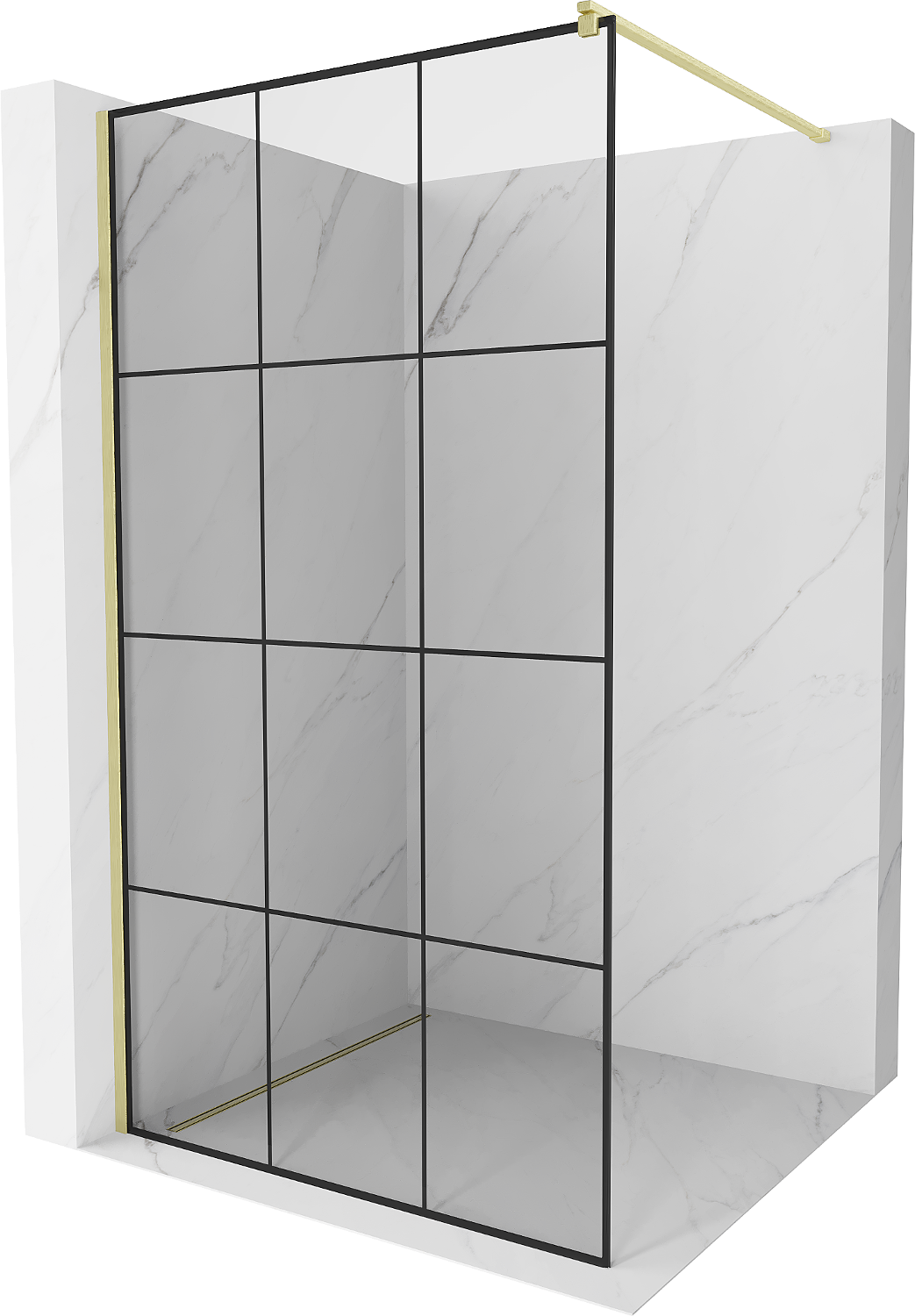 Mexen Kioto Dušo siena Walk-in 100 x 200 cm, juodas tinklelis 8 mm, auksinis šlifuotas - 800-100-101-55-77