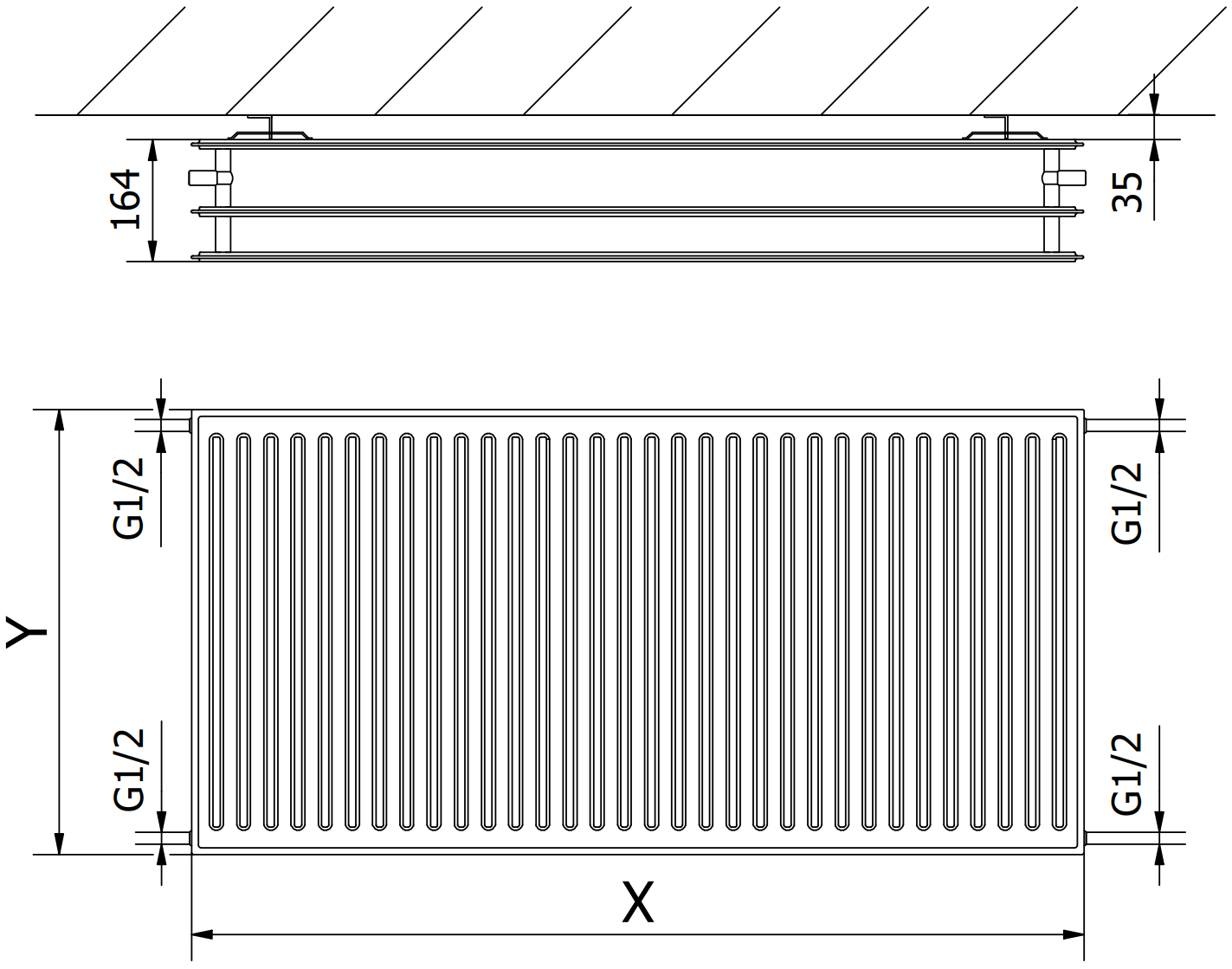 Vertikalių vandens kanalų atstumas: 33,3 mm