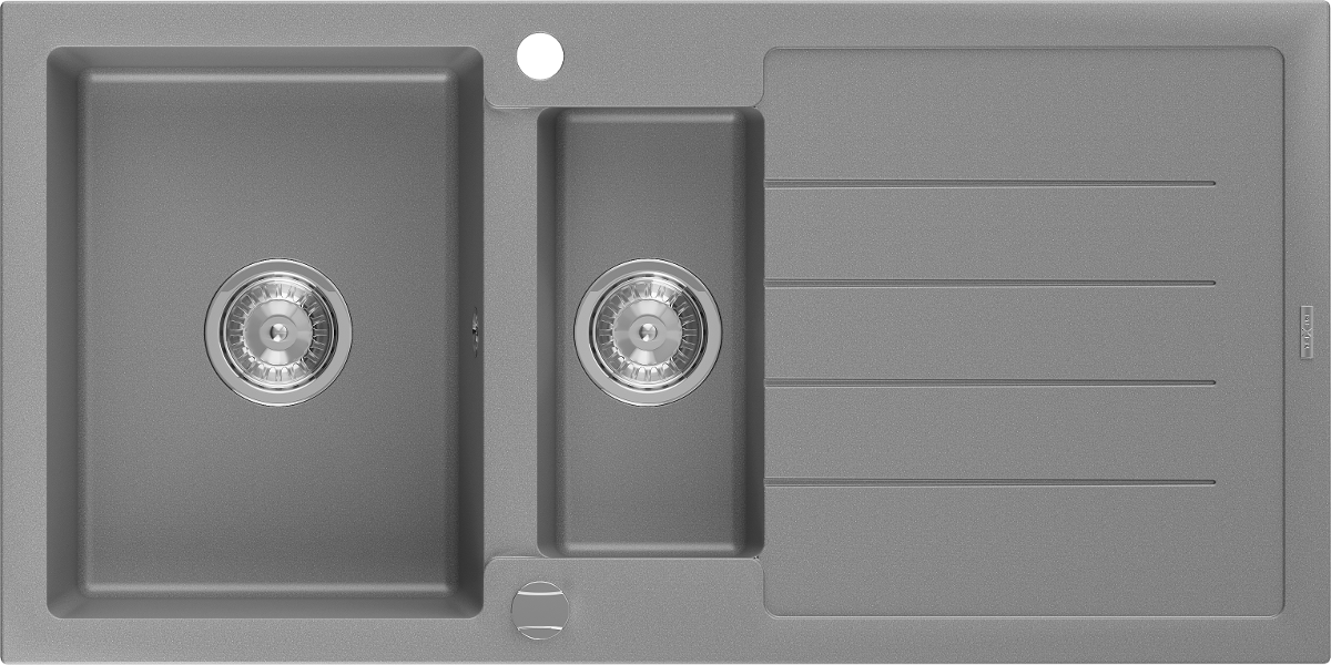 Mexen Andres 1,5 kamerų granitinė kriauklė su nutekėjimu 1000 x 500 mm, pilka, chromuotas sifonas - 6515101510-71