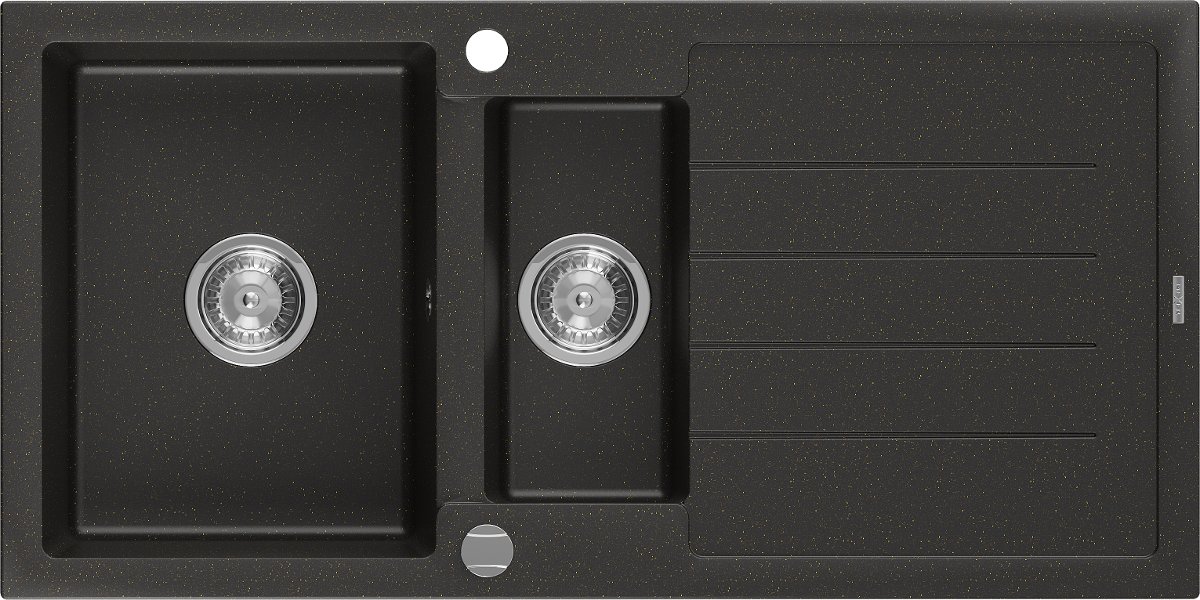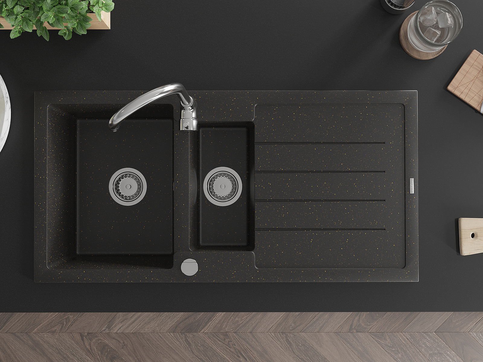 Mexen Andres granito plautuvė 1,5 skyrių su nusausintuvu 1000 x 500 mm, juoda/auksinė metalika, chrominis sifonas