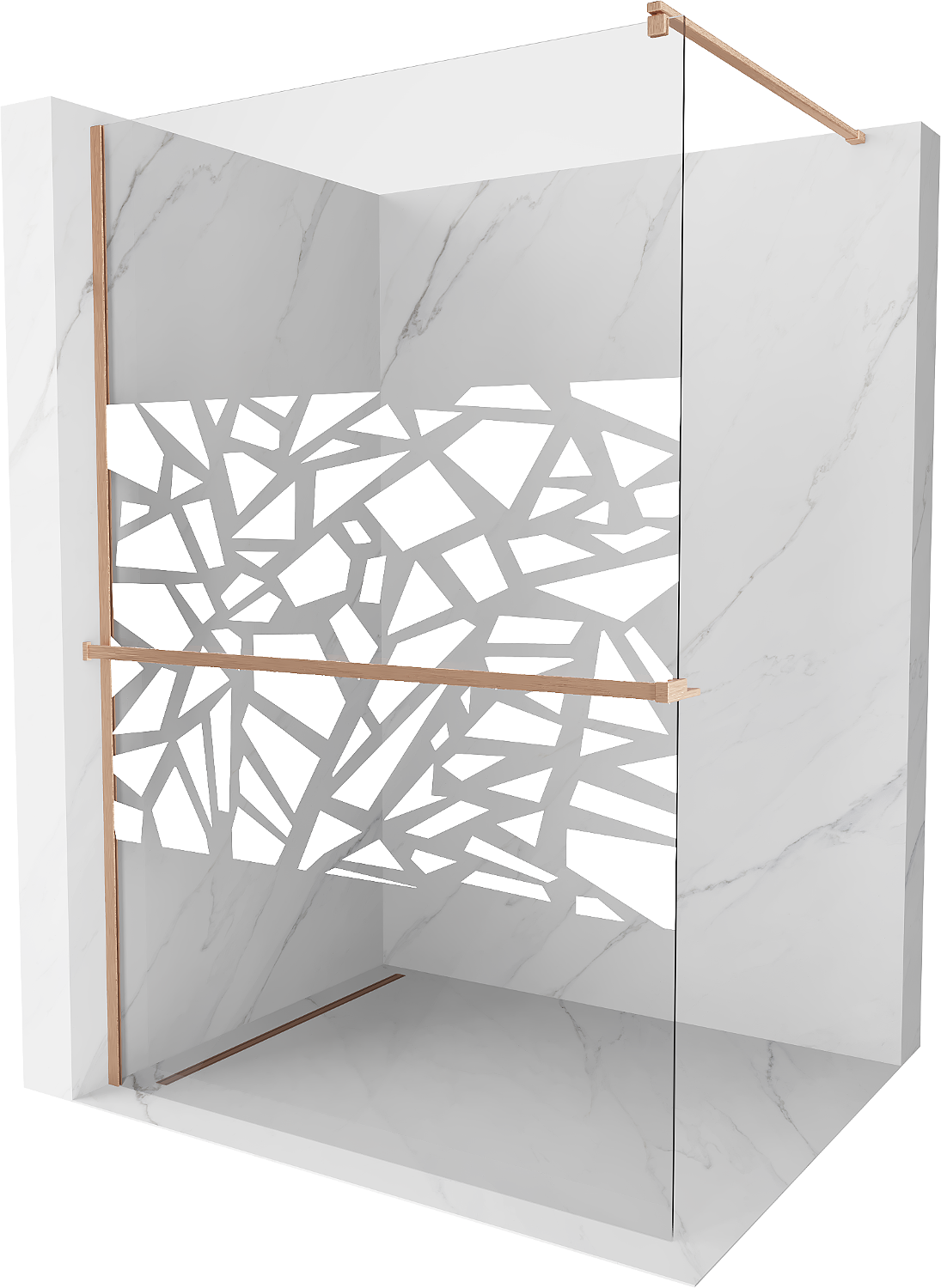 Mexen Kioto+ dušo sienelė su lentyna Walk-in 130 x 200 cm, baltas raštas, šlifuotas varis - 800-130-121-65-85