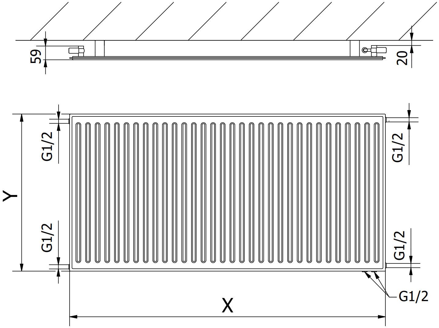 Nuotraukose pavaizduotas radiatorius dydžiu 600 x 1200 mm.