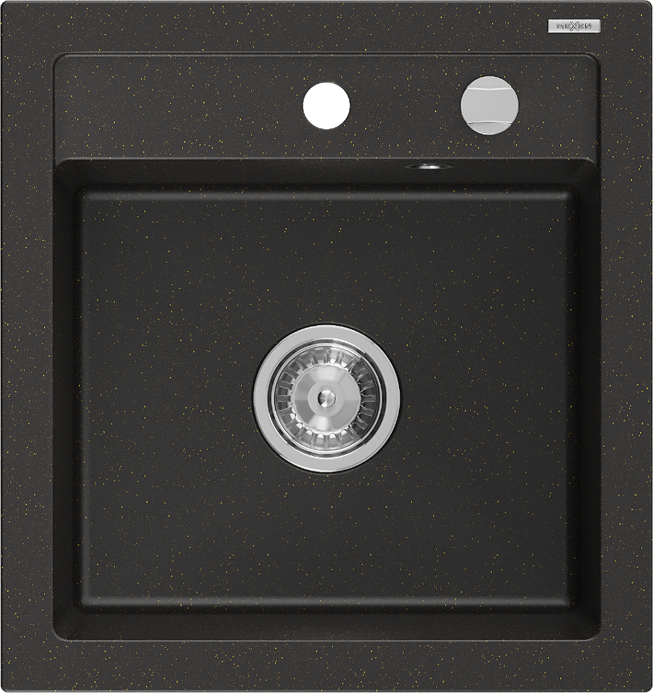 Mexen Vito vienos kameros granito plautuvė 520 x 490 mm, juoda/auksinė metalo spalva, chrominis sifonas - 6503521000-75