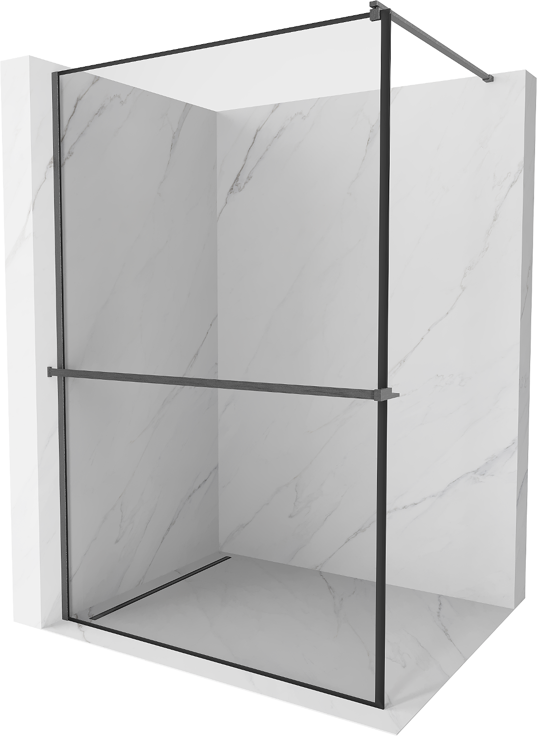 Mexen Kioto+ dušo sienelė su lentyna Walk-in 100 x 200 cm, juodas rėmelis, šeptu gun gray - 800-100-121-66-70