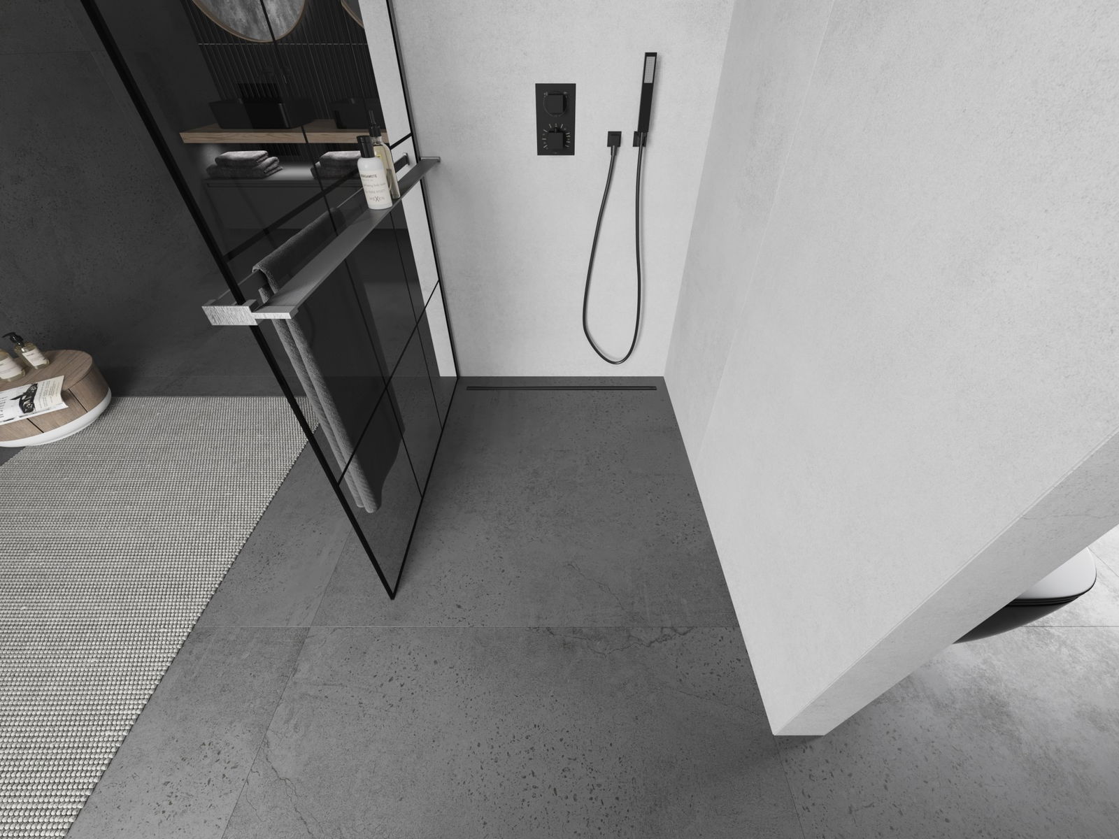 Mexen Kioto+ dušo sienelė su lentyna Walk-in 100 x 200 cm, juodas tinklelis, šlifuota ginklų pilka - 800-100-121-66-77