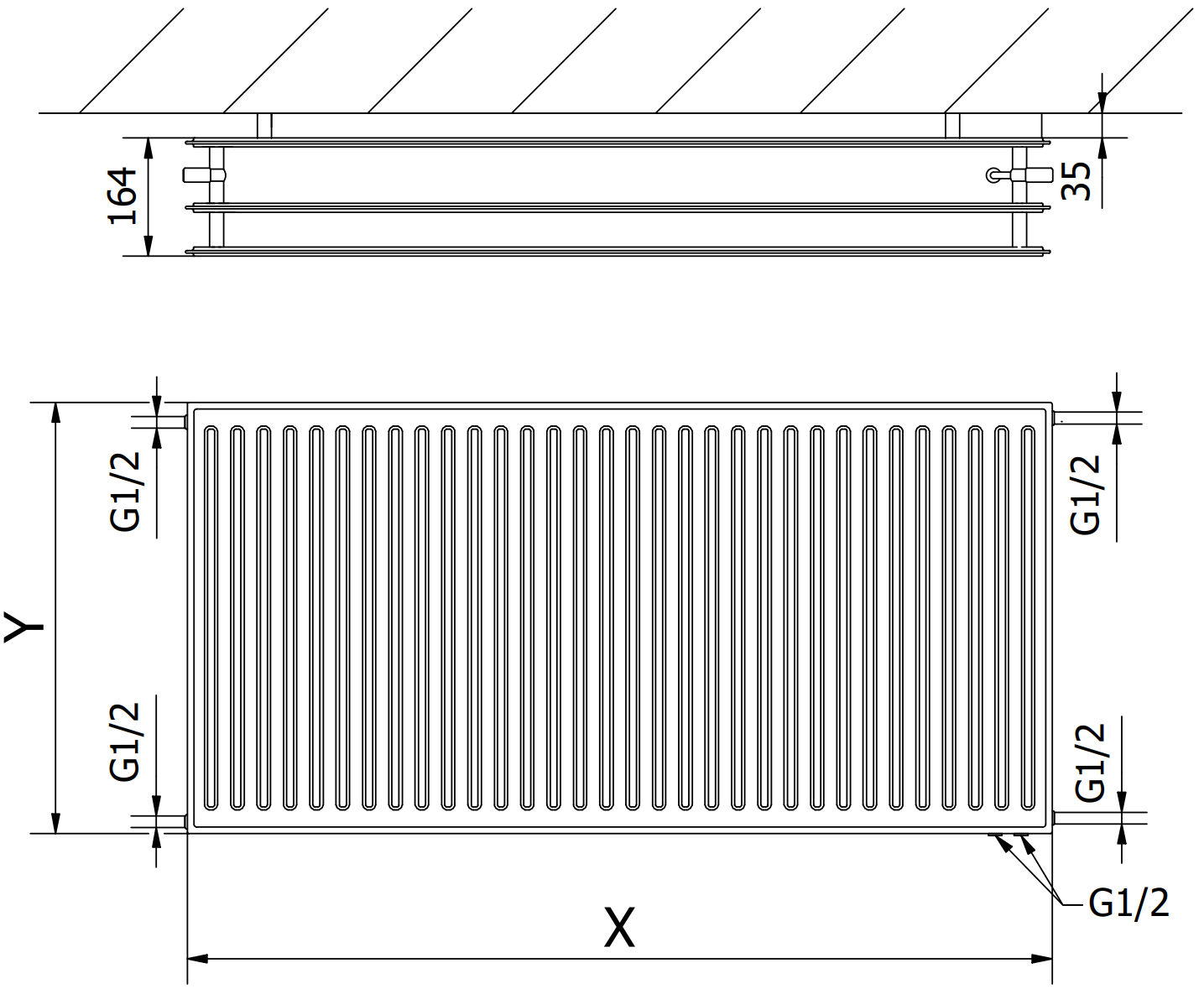 Vertikalių vandens kanalų tarpas: 33,3 mm