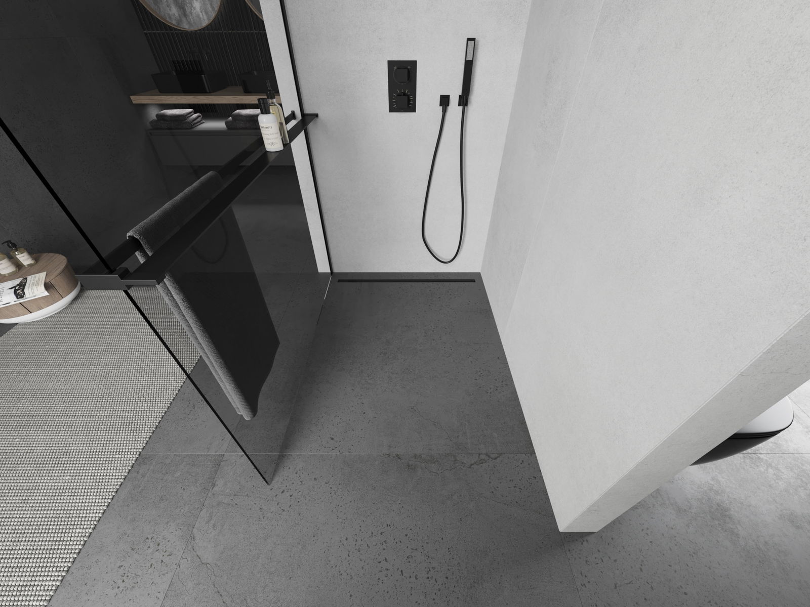 Mexen Kioto+ dušo sienelė su lentyna Walk-in 85 x 200 cm, permatoma, juoda - 800-085-121-70-00