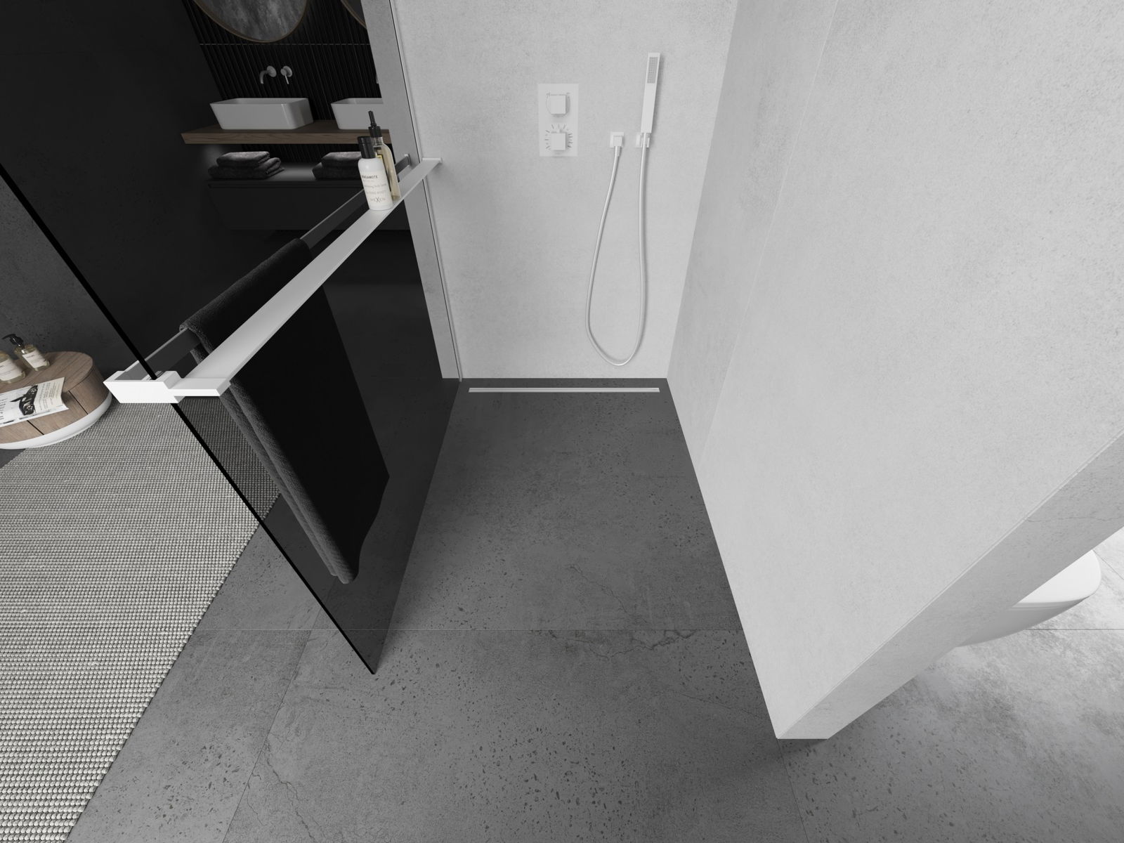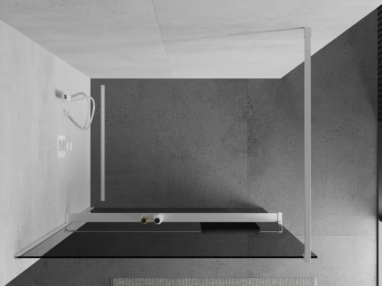 Mexen Kioto+ dušo siena su lentyna Walk-in 120 x 200 cm, grafitas, balta - 800-120-121-20-40