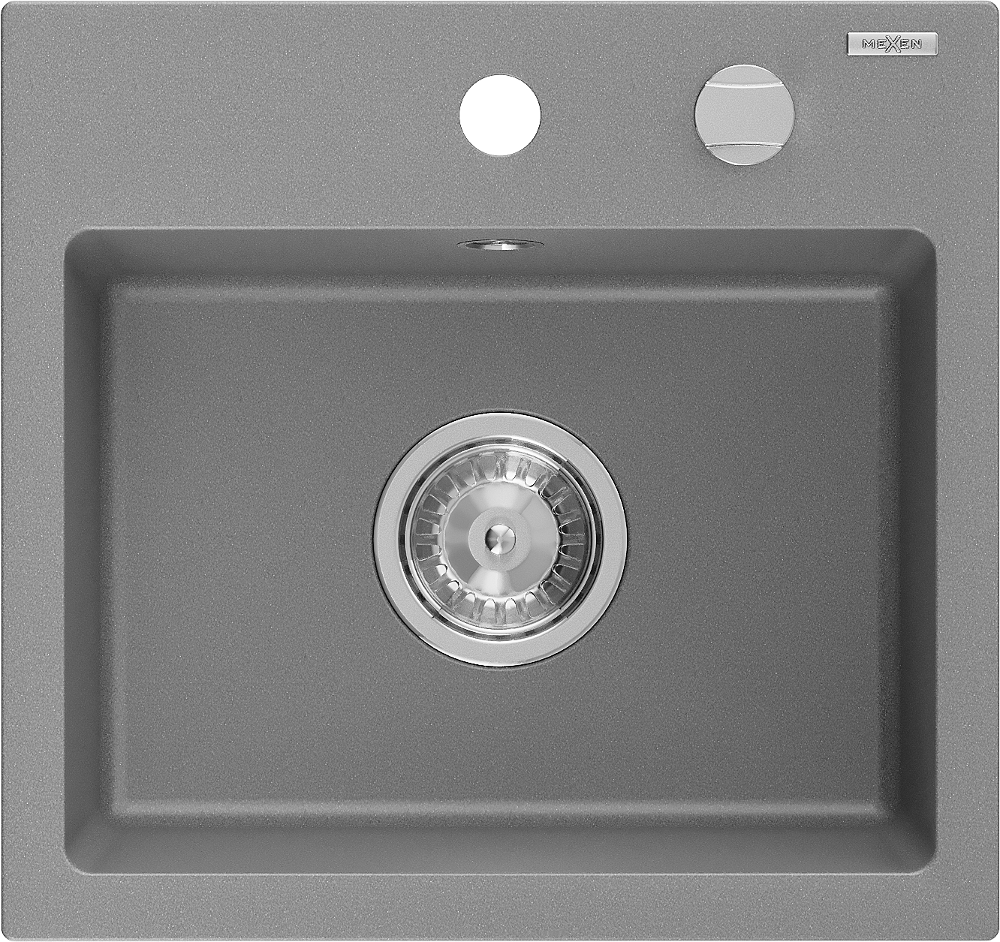 Mexen Milo granitinė vienos kameros plautuvė 435 x 410 mm, pilka, chromuotas sifonas - 6505441000-71