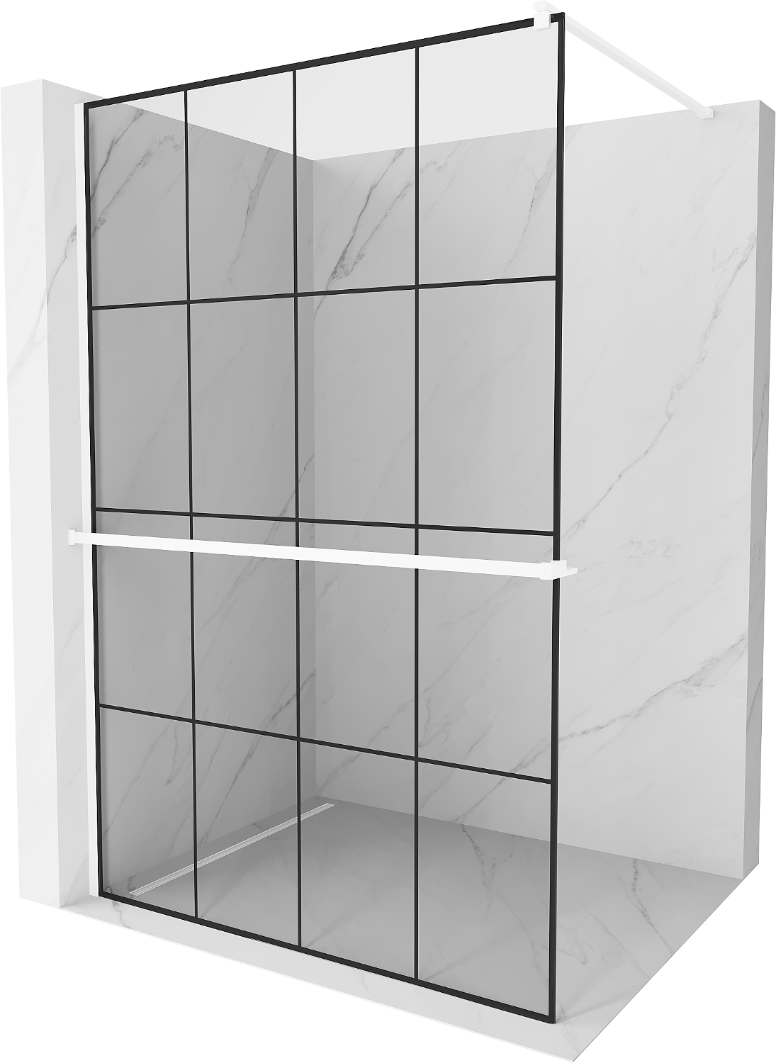 Mexen Kioto+ dušo siena su lentyna Walk-in 140 x 200 cm, juodas tinklelis, balta - 800-140-121-20-77