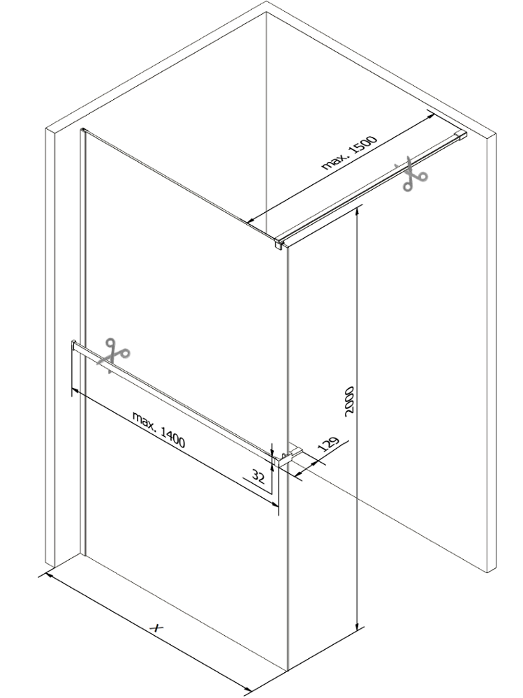 Mexen Kioto+ dušo siena su lentyna Walk-in 80 x 200 cm, balta banga, balta - 800-080-121-20-97