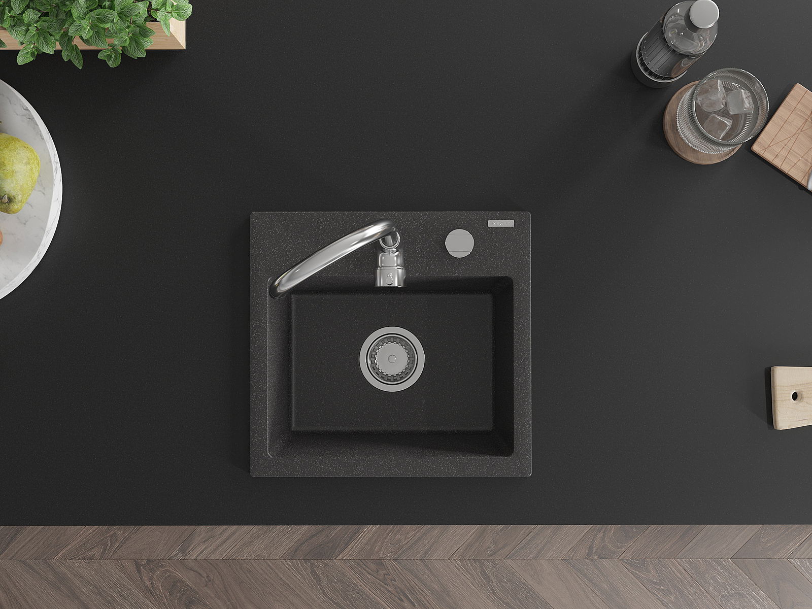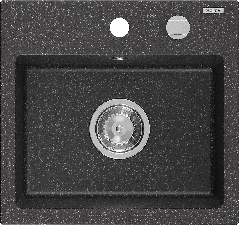 Mexen Milo granitinė plautuvė 1 skyrius 435 x 410 mm, juoda su taškais, chromo sifonas - 6505441000-76