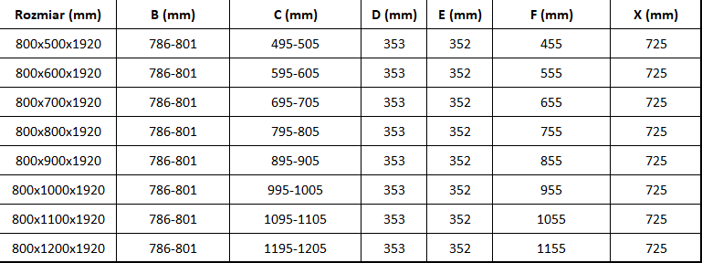 Dydis: 80x120 cm (durys 80 cm, siena 120 cm)