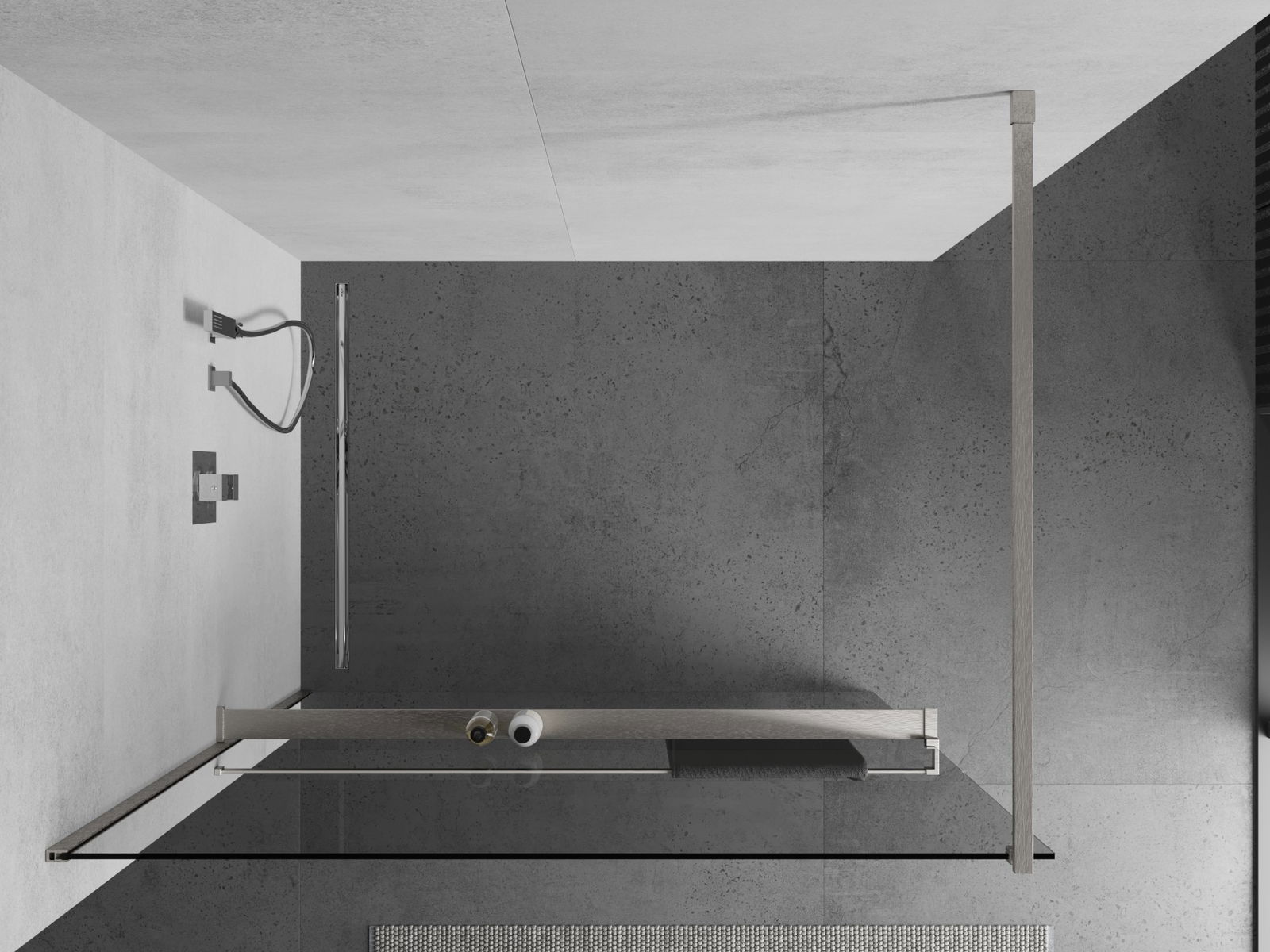Mexen Kioto+ dušo siena su lentyna Walk-in 130 x 200 cm, skaidri, šlifuotas nikelis - 800-130-121-97-00