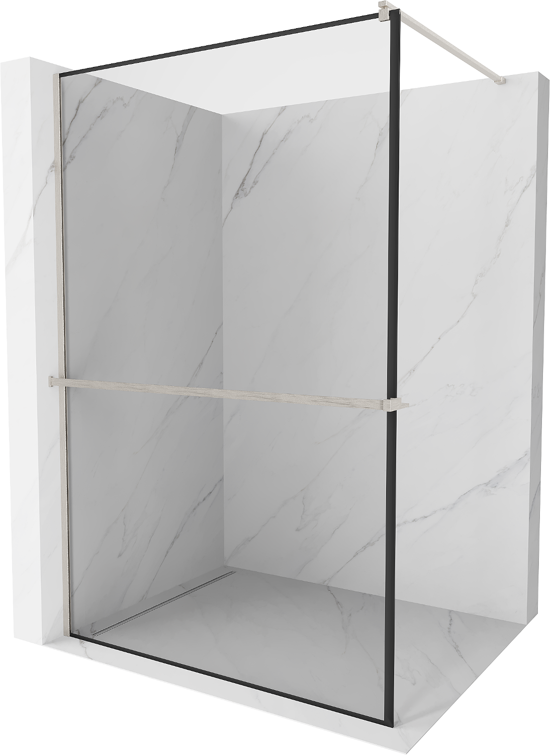 Mexen Kioto+ dušas siena su lentyna Walk-in 80 x 200 cm, juodas rėmelis, šlifuotas nikelis - 800-080-121-97-70