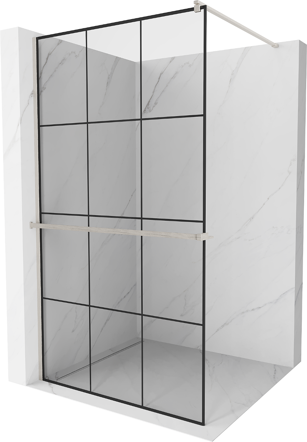 Mexen Kioto+ dušo sienelė su lentyna Walk-in 110 x 200 cm, juoda grotelių, šlifuotas nikelis - 800-110-121-97-77