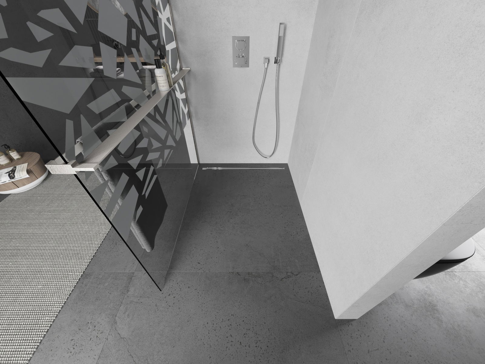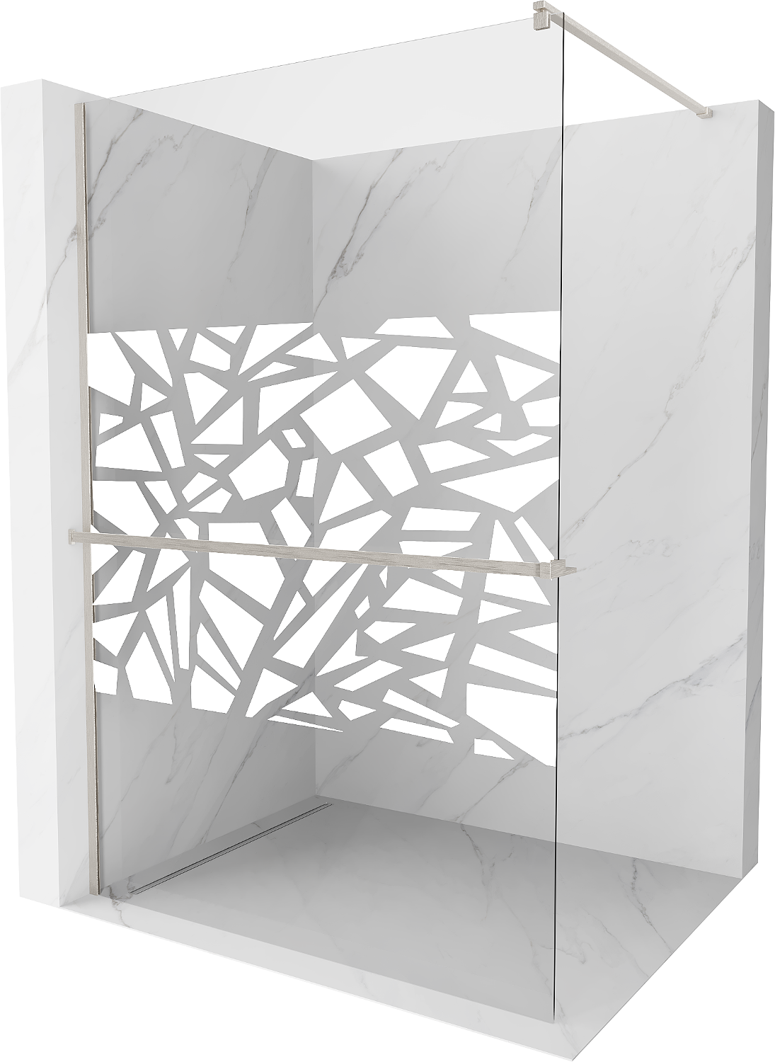 Mexen Kioto+ dušo siena su lentyna Walk-in 70 x 200 cm, baltas raštas, šlifuotas nikelis - 800-070-121-97-85