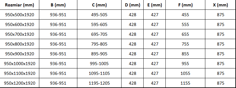 Dydis: 95x90 cm (durys 95 cm, sienelė 90 cm)