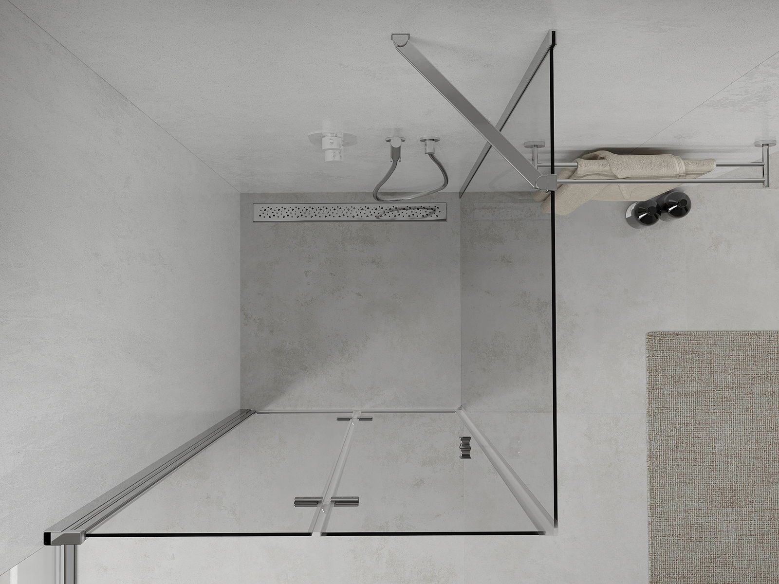 Gebėjimas sulankstyti duris tiek išorėje, tiek viduje, leidžia gauti daugiau vietos, kai nenaudojate dušo. Tai idealus sprendimas mažesniems vonios kambariams, maksimaliai naudojant turimą paviršių.