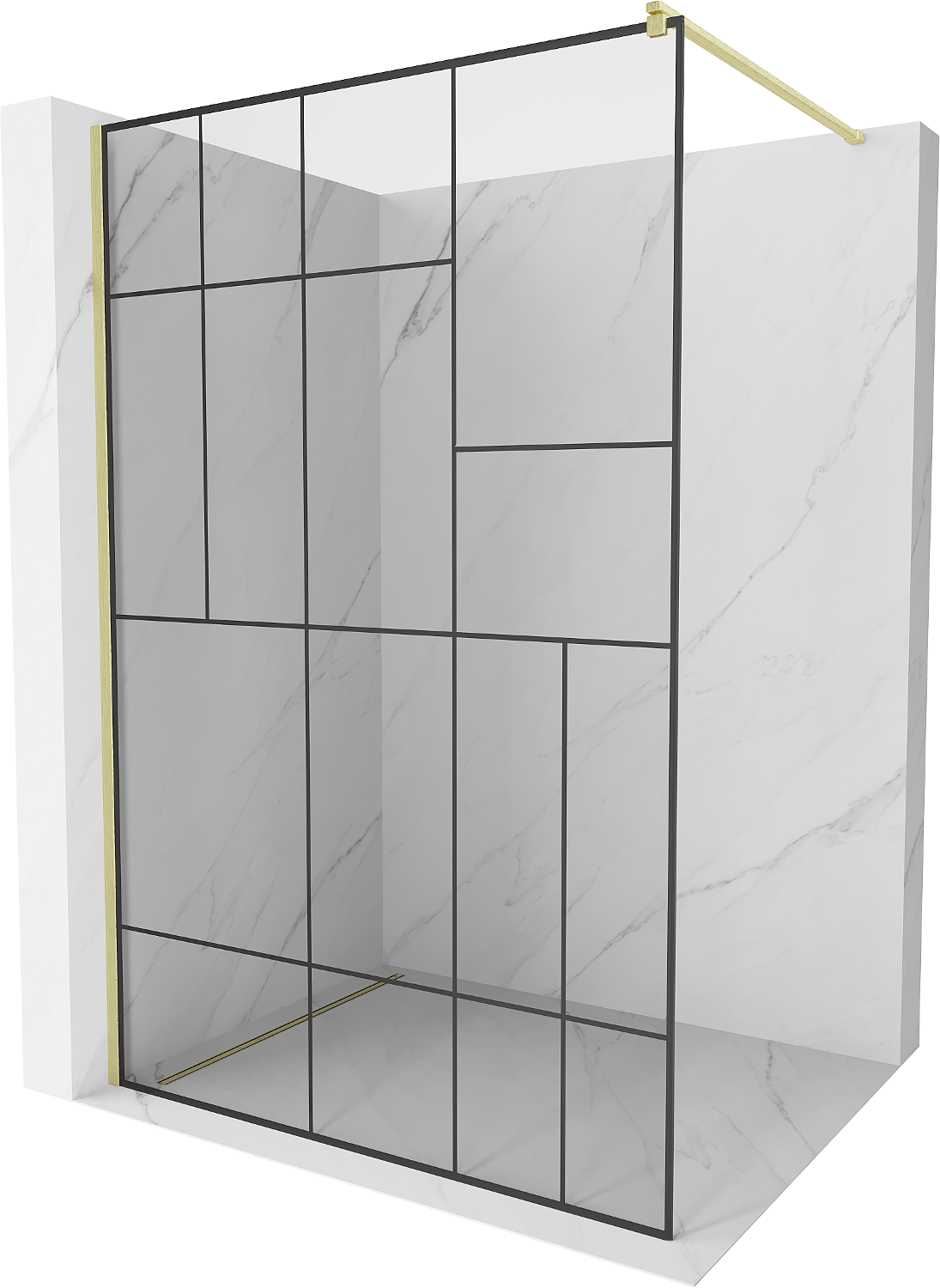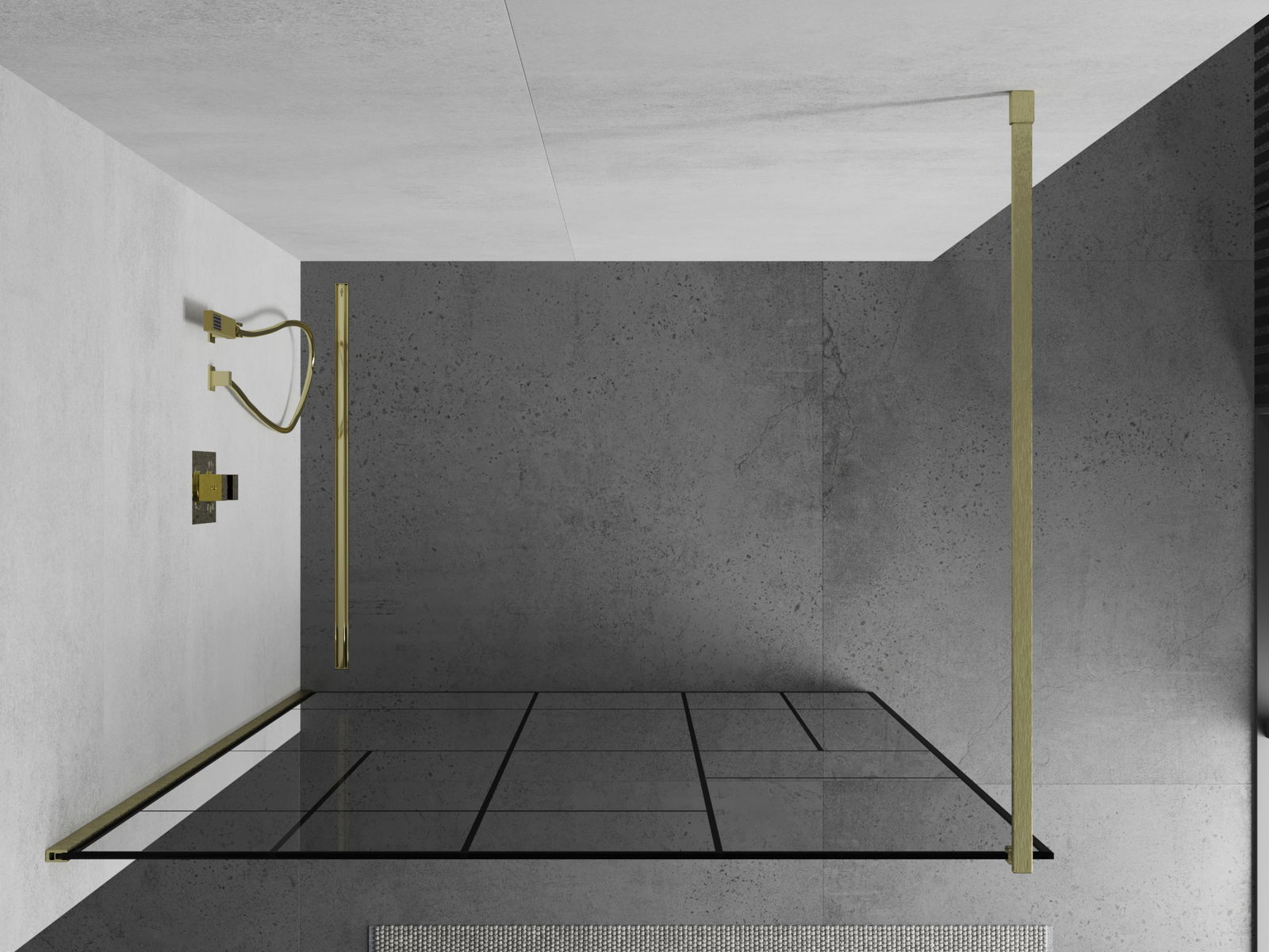Mexen Kioto dušo sienelė Walk-in 100 x 200 cm, juodas raštas 8 mm, auksinė šlifuota - 800-100-101-55-78