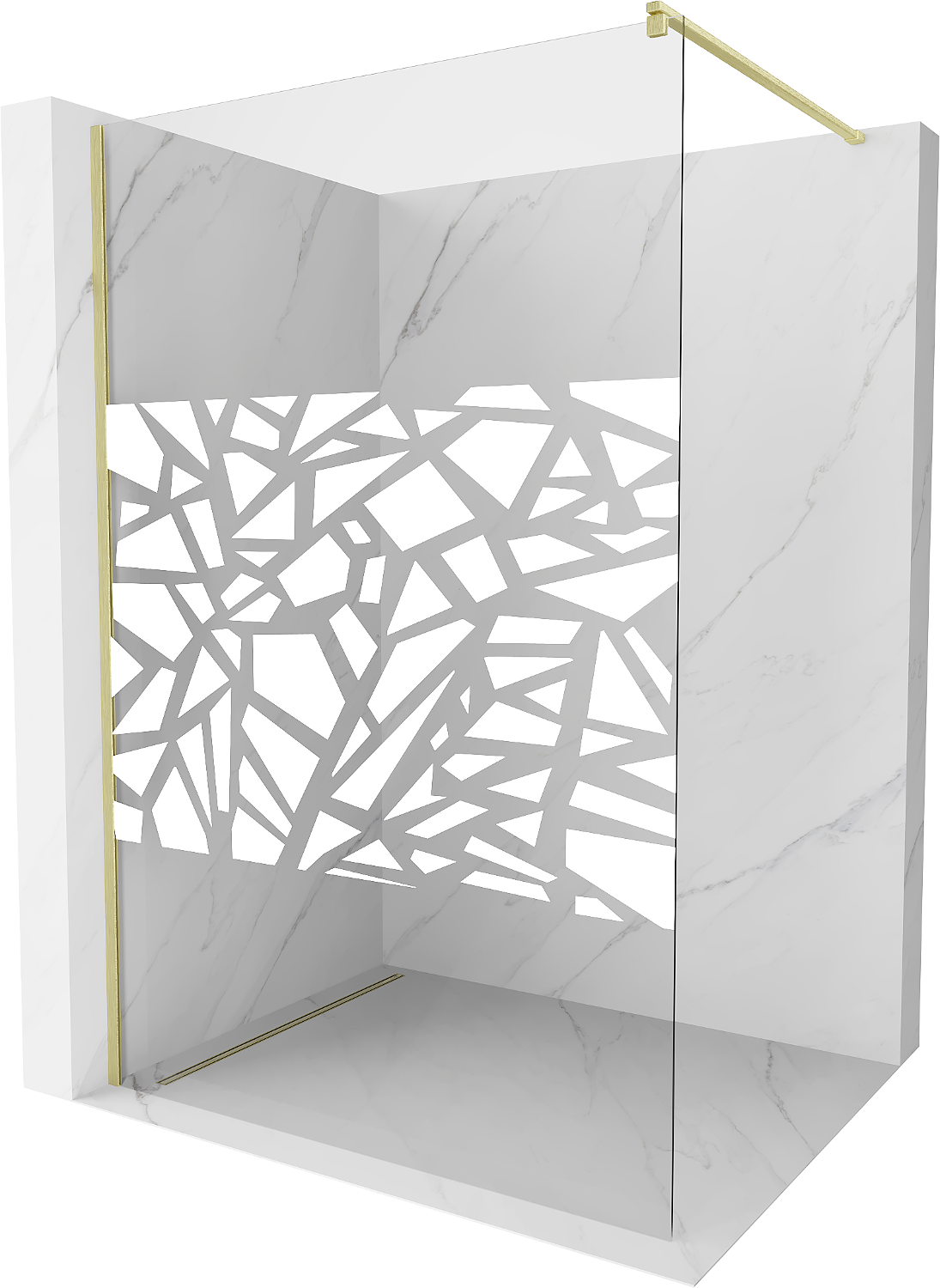 Mexen Kioto dušo sienelė Walk-in 80 x 200 cm, baltas raštas 8 mm, auksinė šlifuota - 800-080-101-55-85