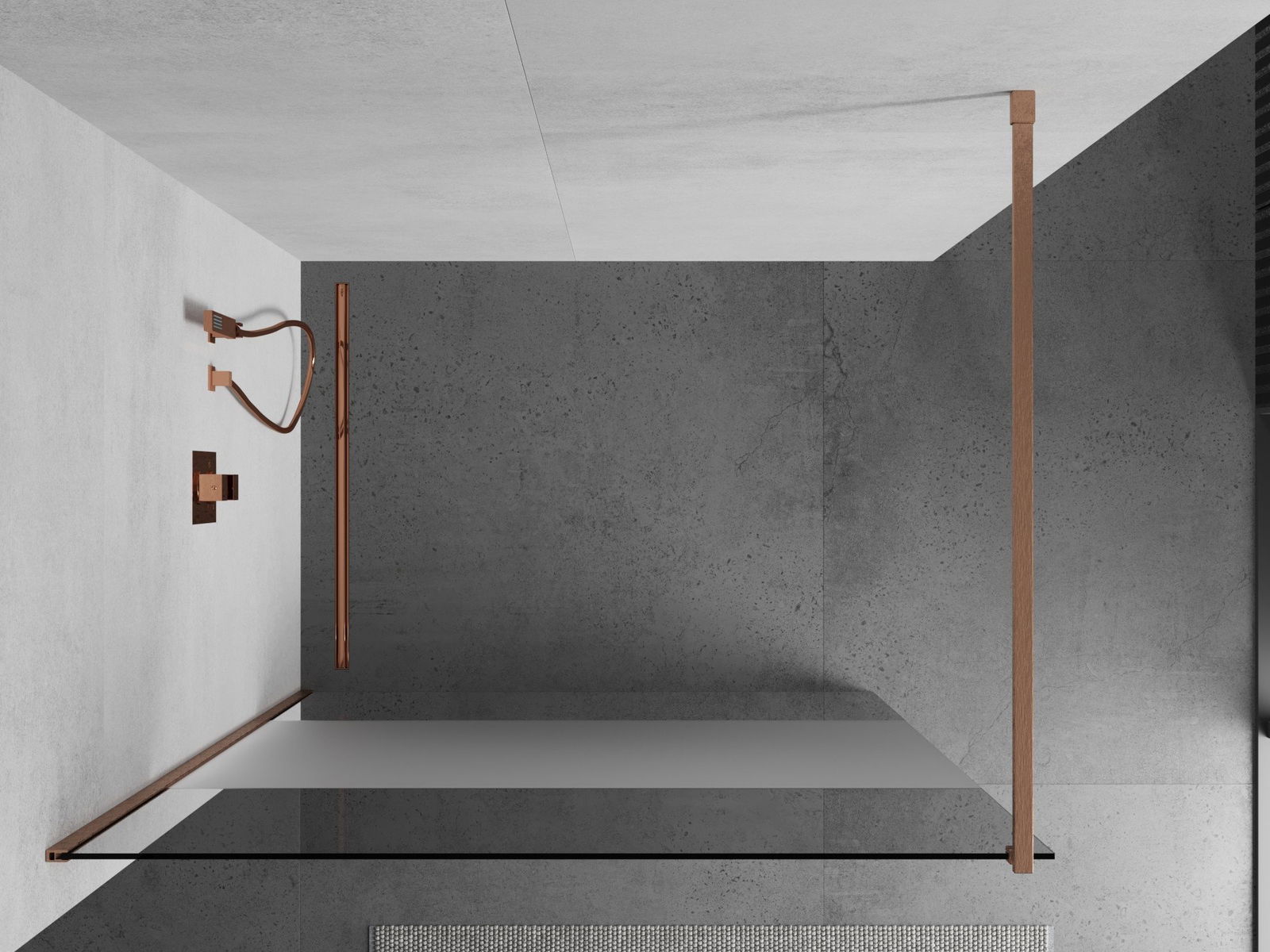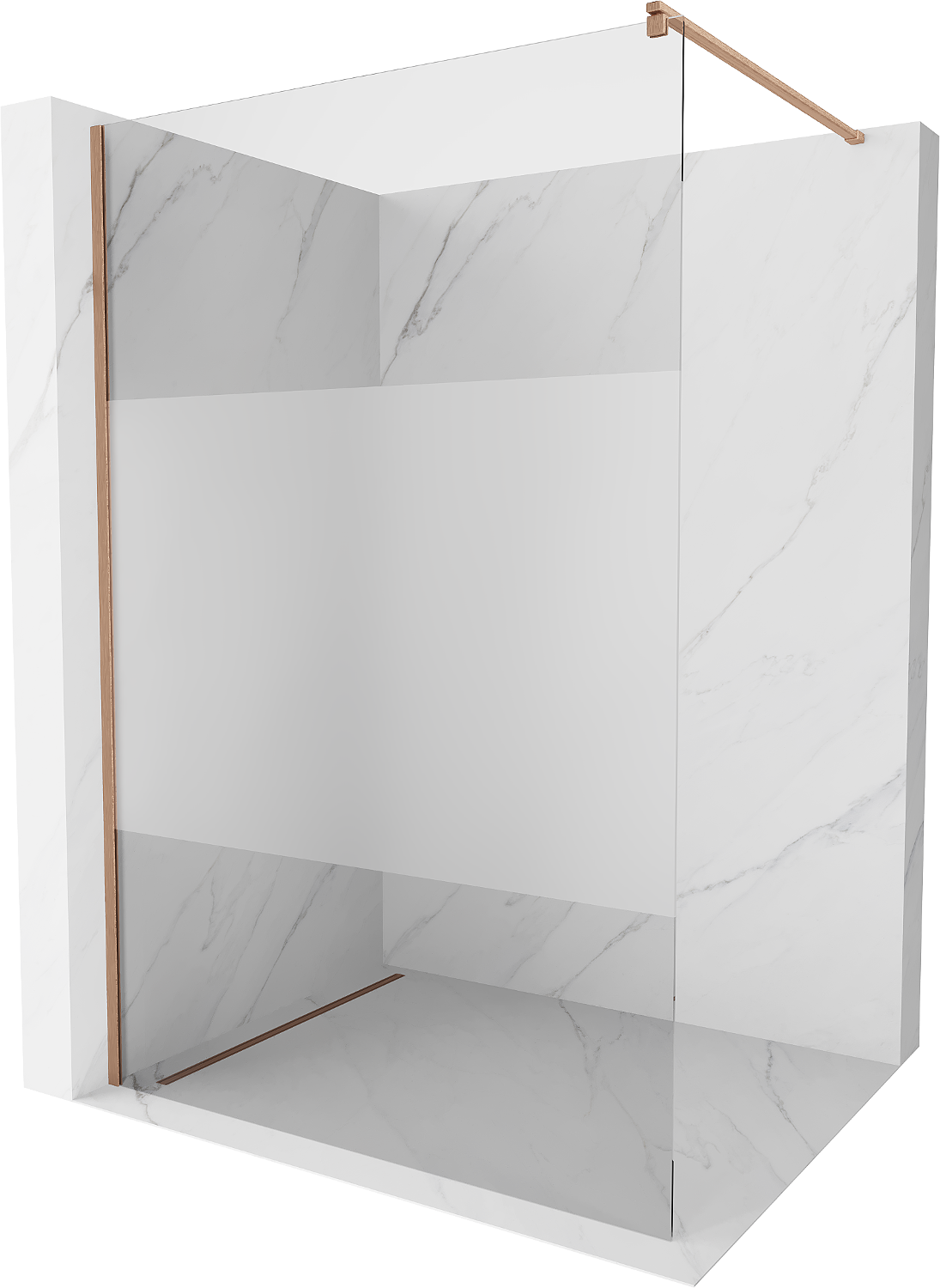 Mexen Kioto dušo sienelė Walk-in 130 x 200 cm, permatomas/matinis 8 mm, šlifuota varis - 800-130-101-65-35