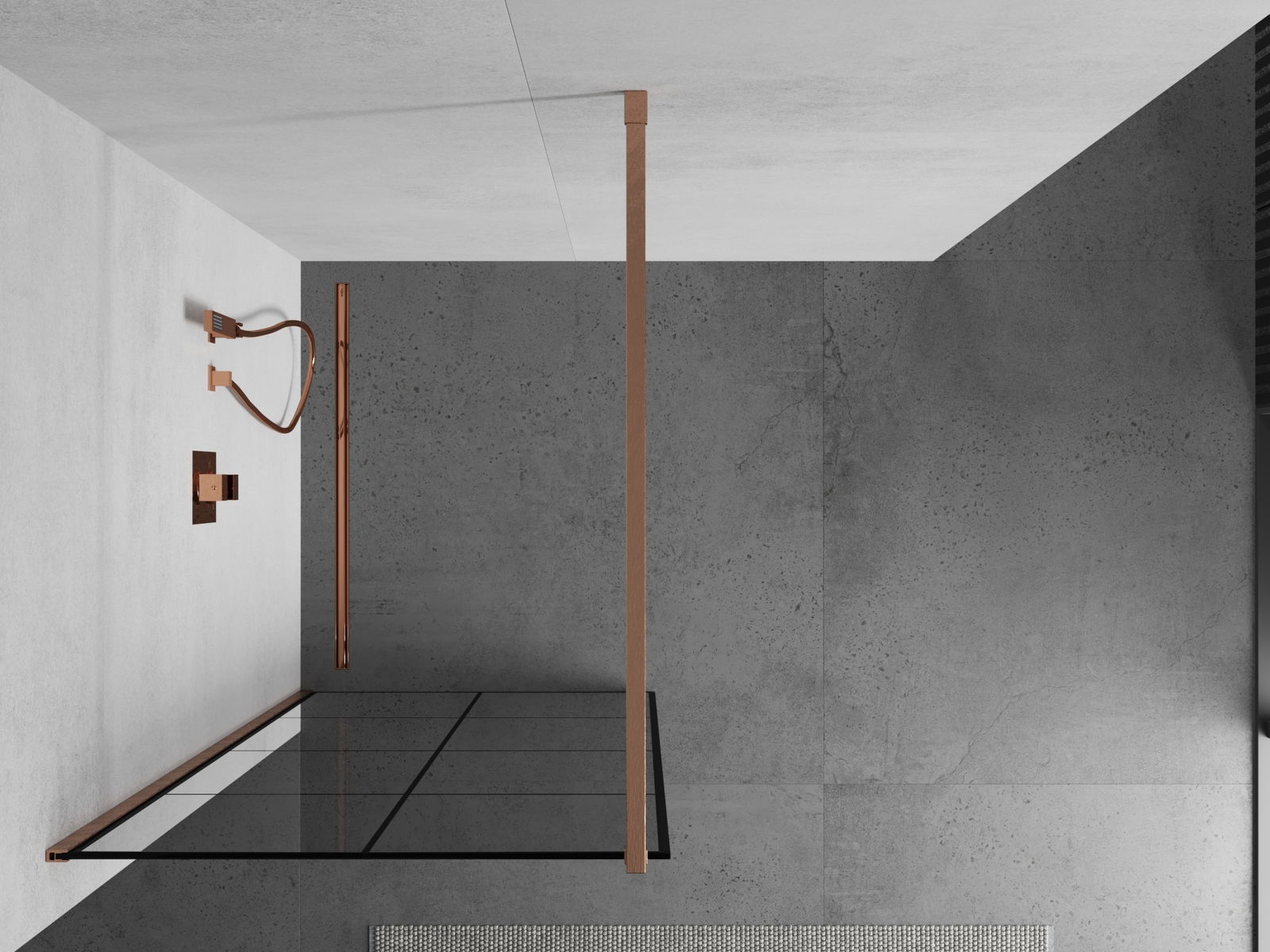 Mexen Kioto dušo sienelė Walk-in 70 x 200 cm, juodas tinklelis 8 mm, šepečiu valytas varis - 800-070-101-65-77