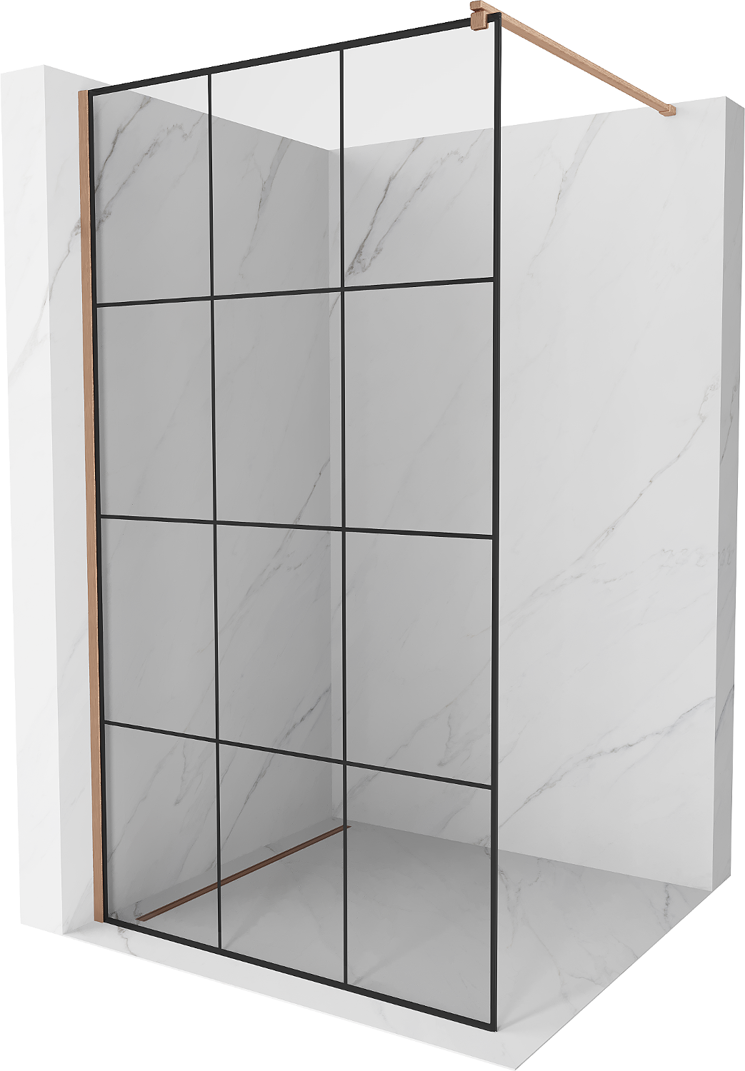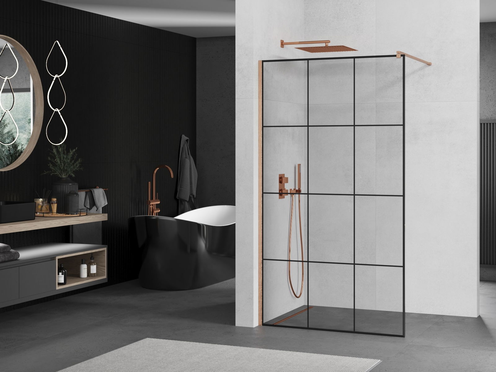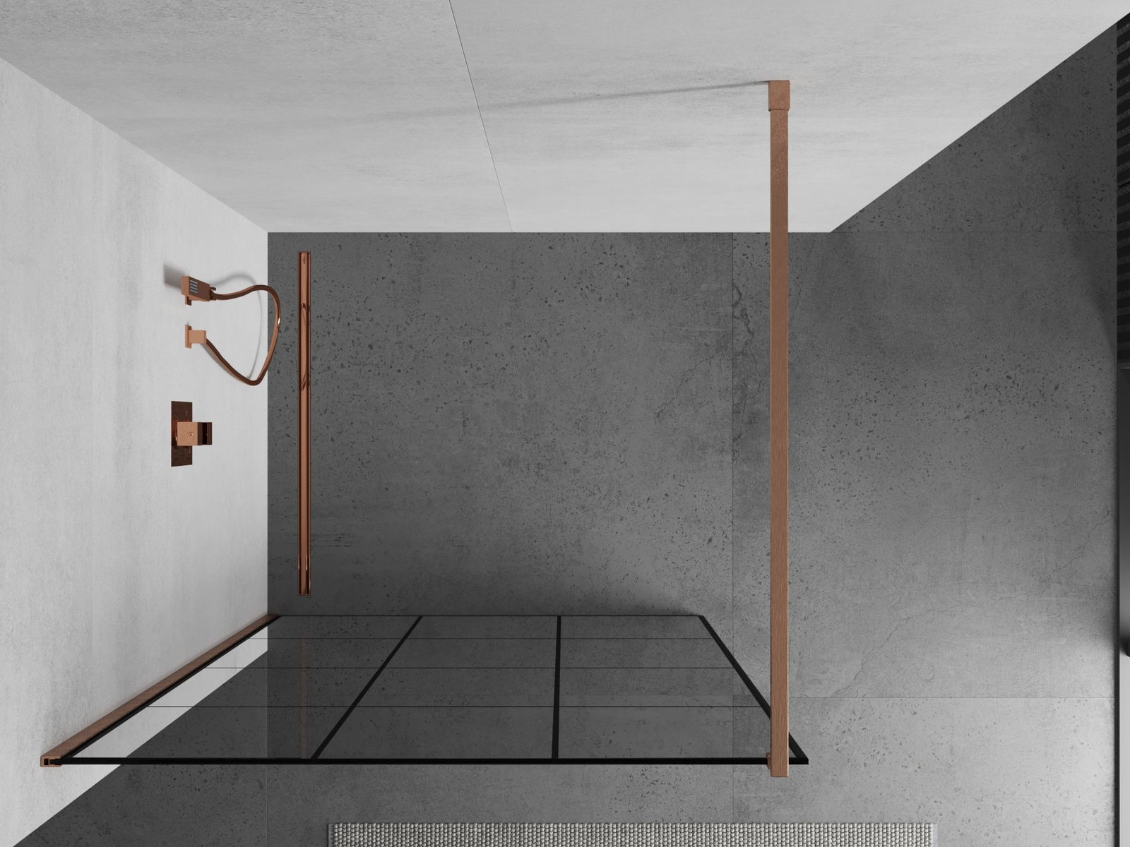 Mexen Kioto dušo sienelė "Walk-in" 100 x 200 cm, juodas tinklelis 8 mm, valcuota varis - 800-100-101-65-77