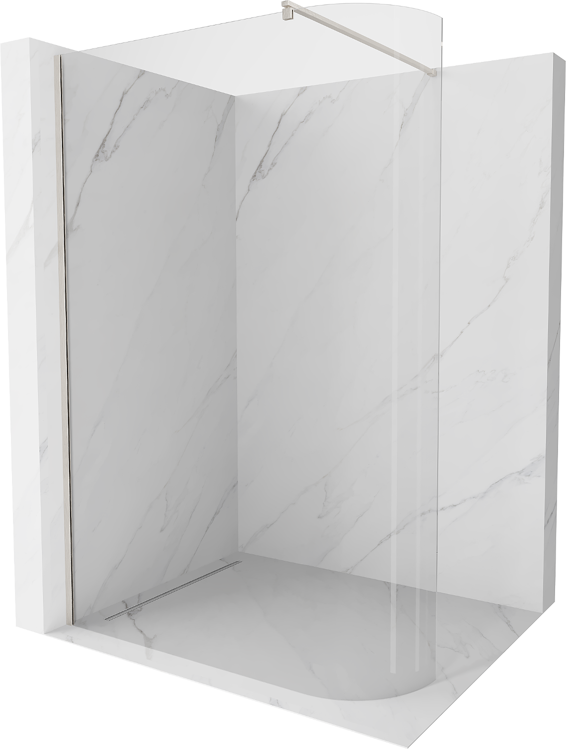 Mexen Kioto-R užapvalinta dušo sienelė Walk-in 90 x 200 cm, skaidri 8 mm, šlifuotas nikelis - 800-090-101-97-06