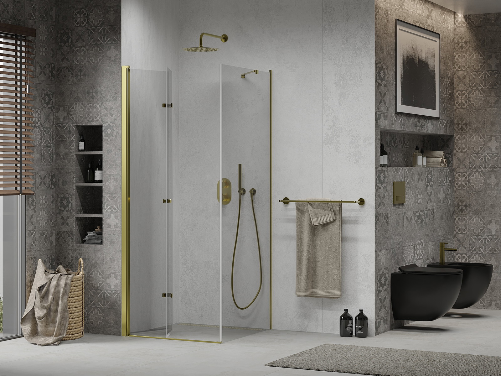 Mexen Lima Sulankstoma dušo kabina 80 x 80 cm, skaidri, auksinė - 856-080-080-50-00
