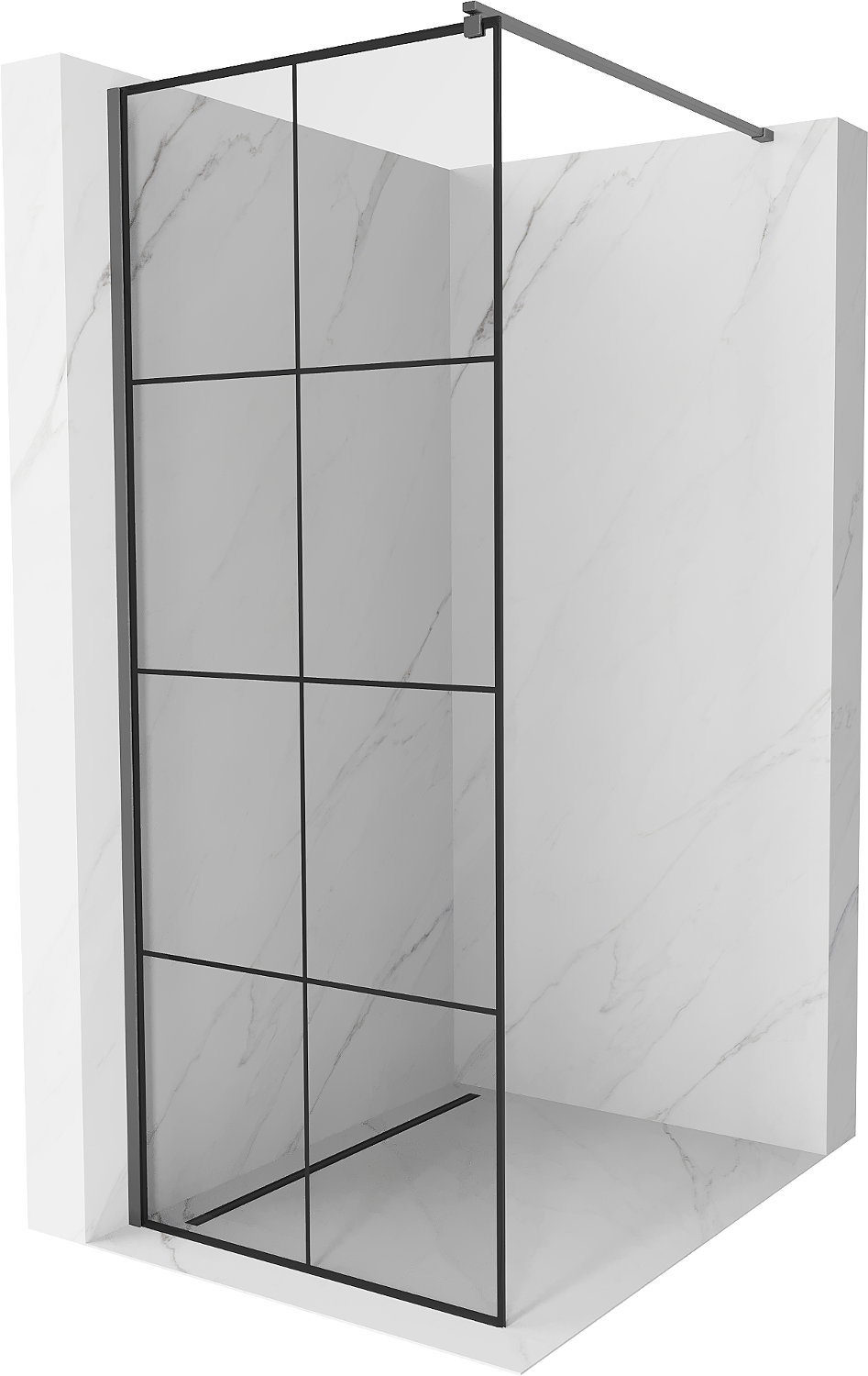 Mexen Kioto dušo siena Walk-in 70 x 200 cm, juodas tinklelis 8 mm, gun metal - 800-070-101-95-77