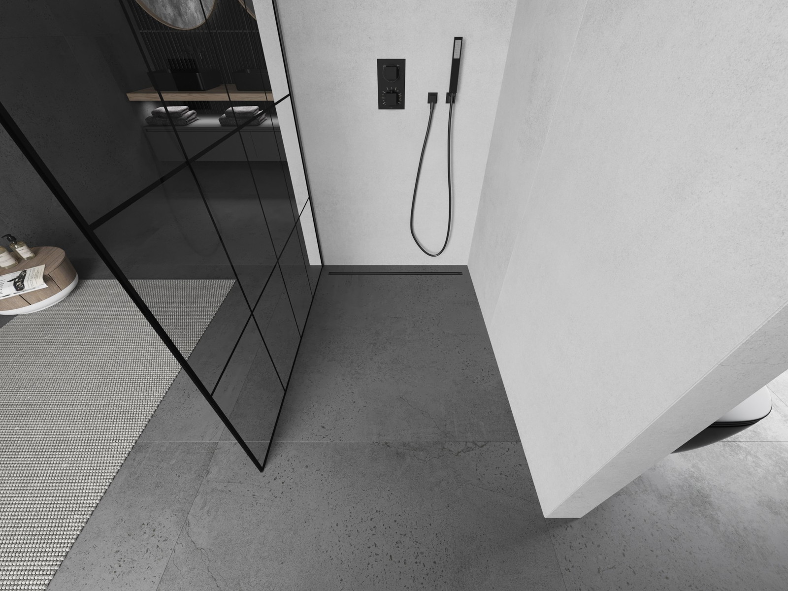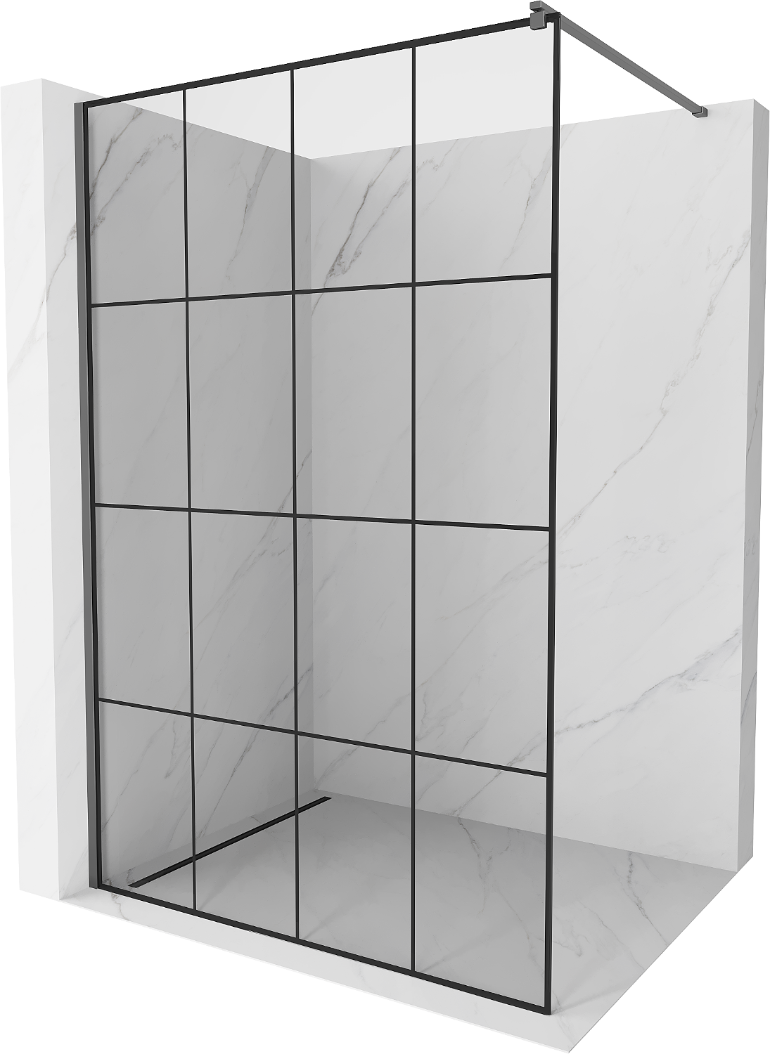 Mexen Kioto dušo sienelė Walk-in 150 x 200 cm, juodas tinklelis 8 mm, gun metal - 800-150-101-95-77