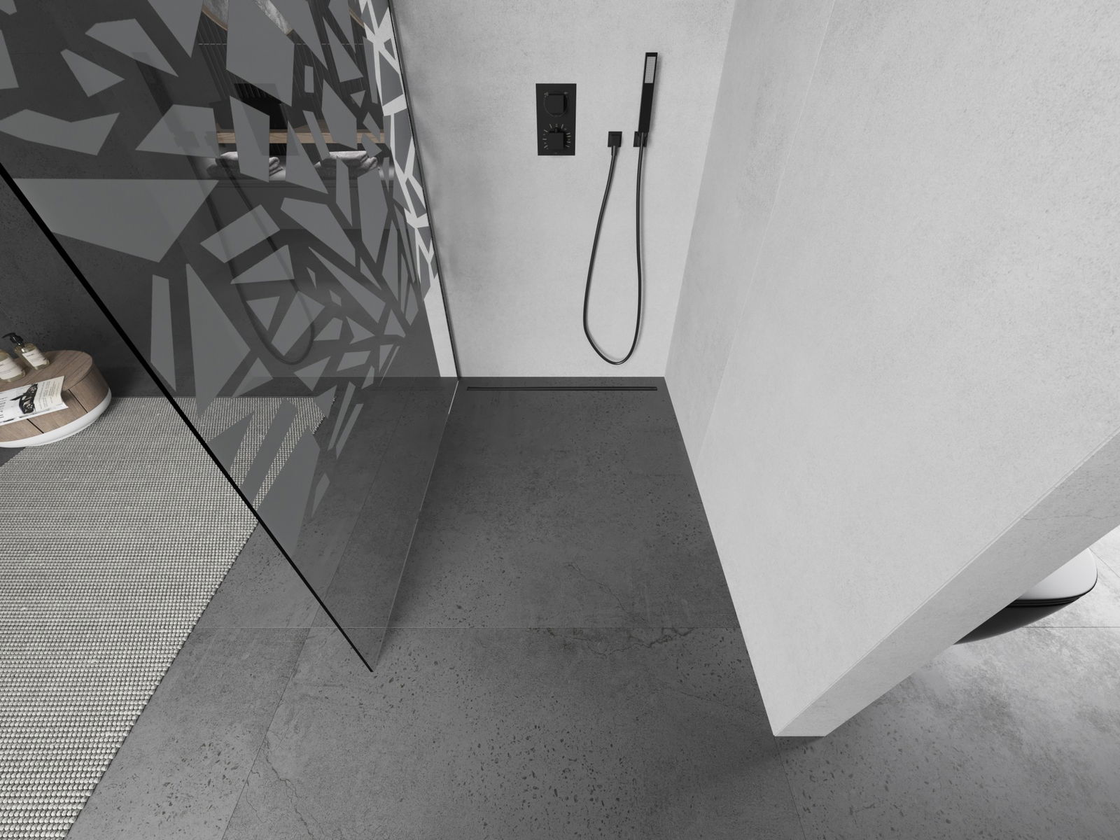 Mexen Kioto dušo siena Walk-in 110 x 200 cm, baltas raštas 8 mm, gun metal - 800-110-101-95-85