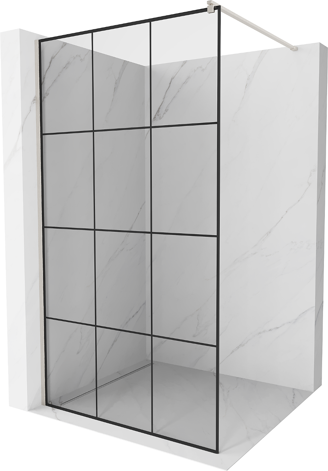 Mexen Kioto dušo sienelė Walk-in 120 x 200 cm, juodas tinklelis 8 mm, šlifuotas nikelis - 800-120-101-97-77