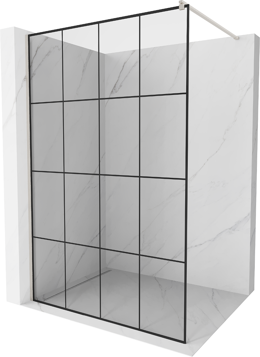 Mexen Kioto dušo sienelė Walk-in 160 x 200 cm, juodas tinklas 8 mm, šlifuotas nikelis - 800-160-101-97-77