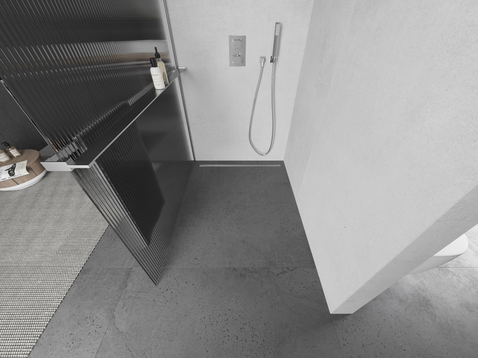Mexen Kioto+ L dušo sienelė su lentyna Walk-in 100 x 200 cm, dryžuotas, chromas - 800-100-123-01-09