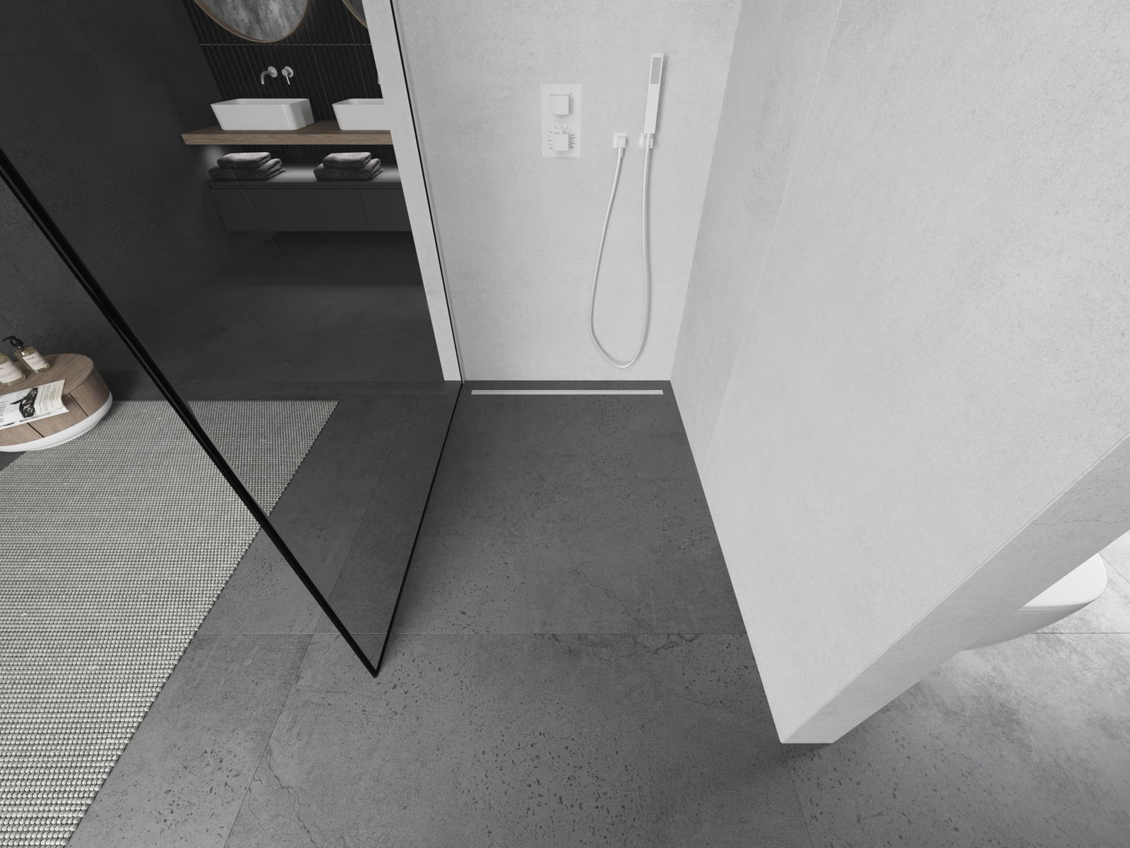 Mexen Kioto L Dušo Sienelė Walk-in 90 x 200 cm, juodas rėmas, balta - 800-090-103-20-70