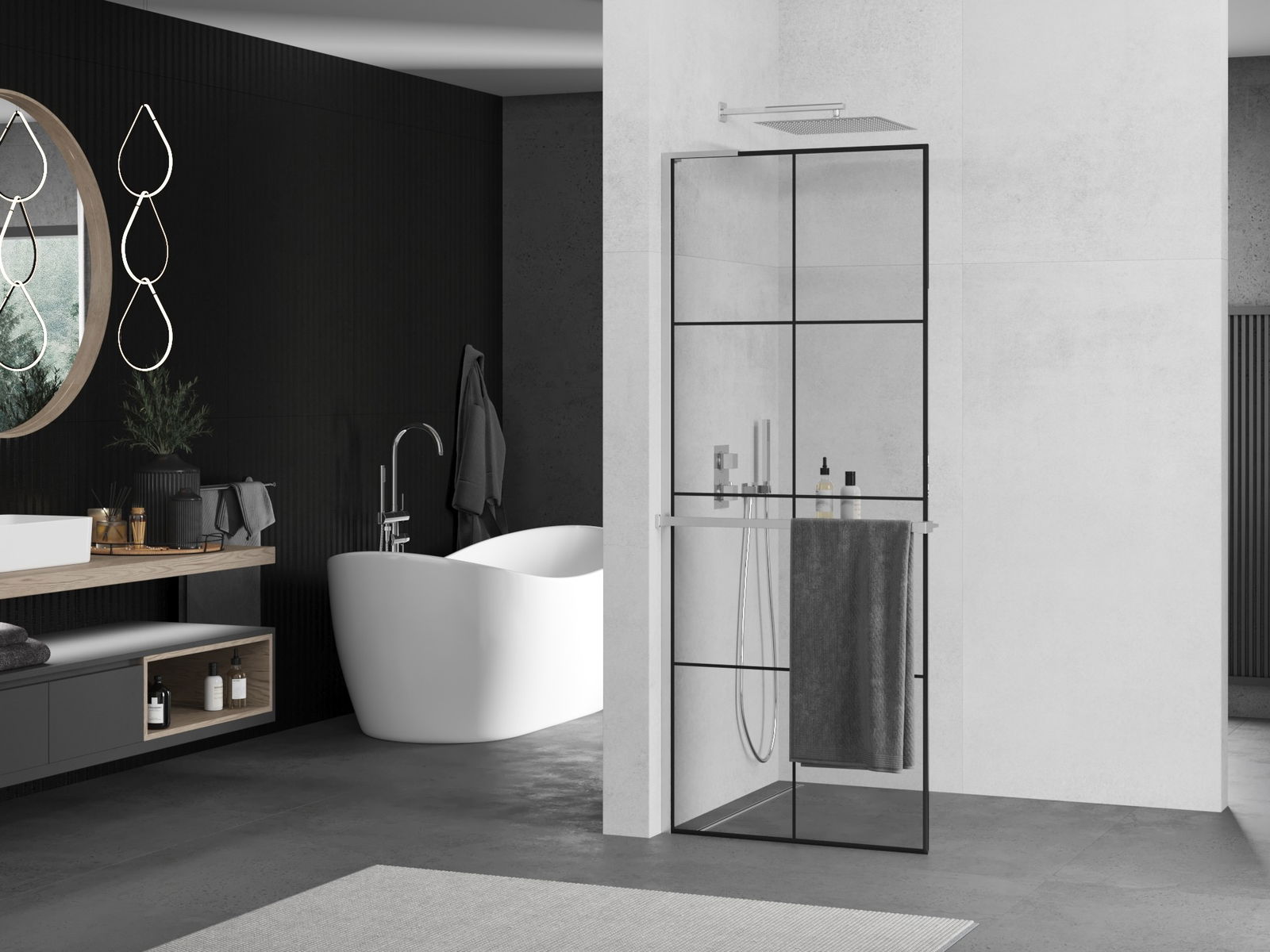 Mexen Kioto+ L dušo siena su lentyna Walk-in 70 x 200 cm, juodi langeliai, chromas - 800-070-123-01-77