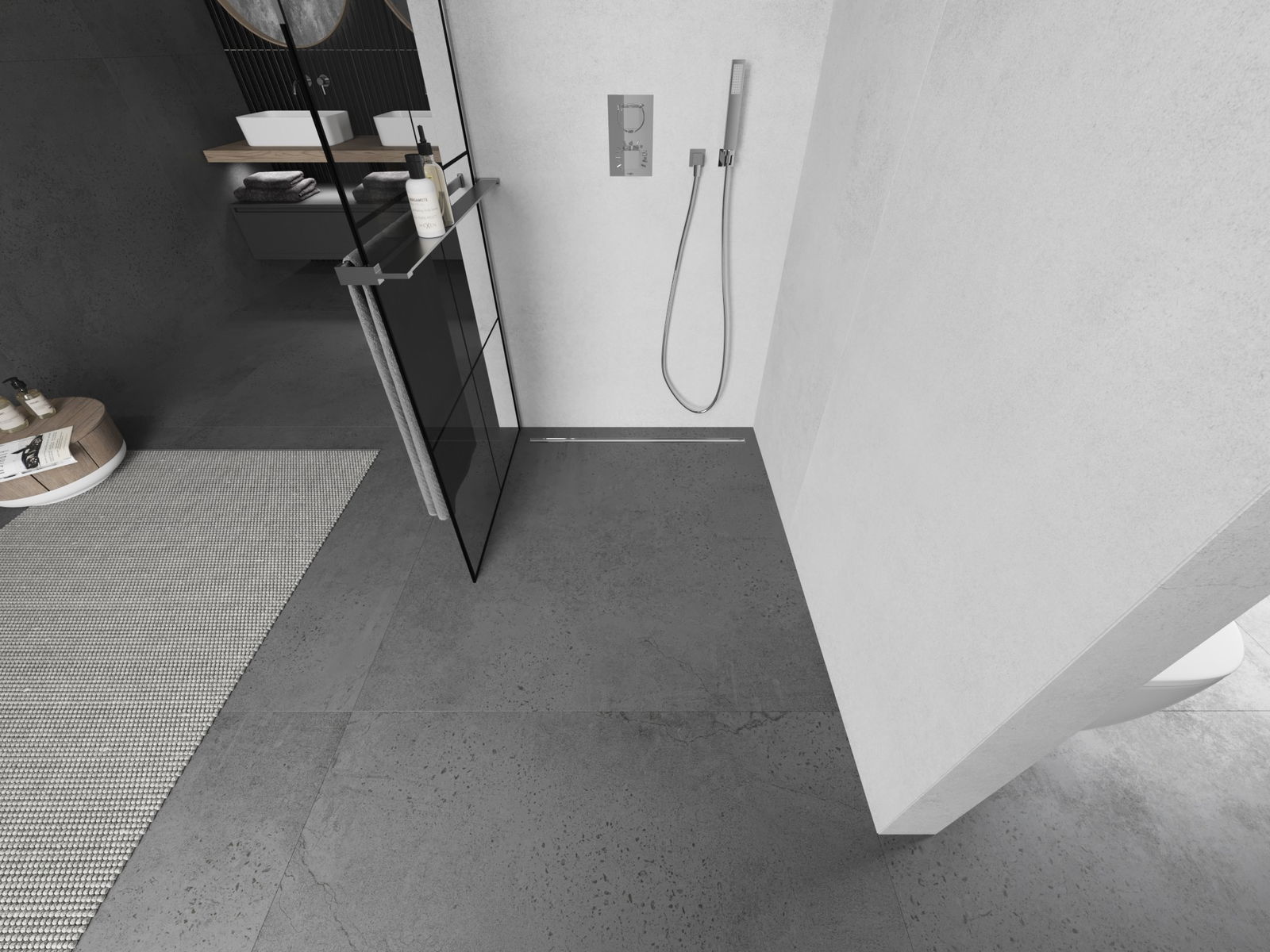 Produktą, atsižvelgiant į poreikius, galima sumontuoti tiek ant dušo padėklo, tiek tiesiogiai ant grindų. Universalus montavimo būdas leidžia pritaikyti produktą įvairių tipų vonios kambariams ir erdvės konfigūracijoms.